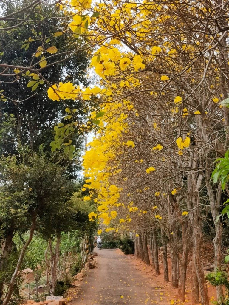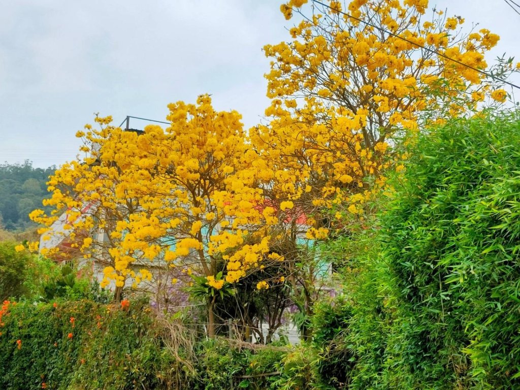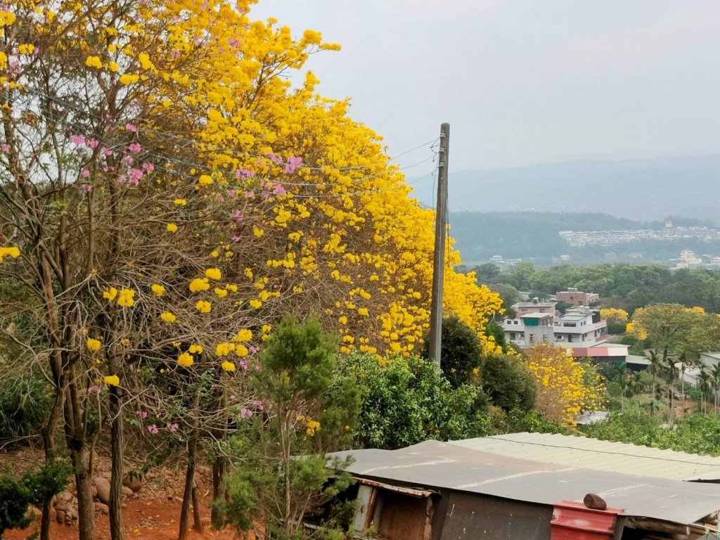 #黃花風鈴木與紫藤花,新埔上樟路,風鈴花農場,是春神每年必來的地方,今年除了黃花風鈴木,紫藤盛開相當浪漫,相當適合拍照打卡(紫藤區收費20)。