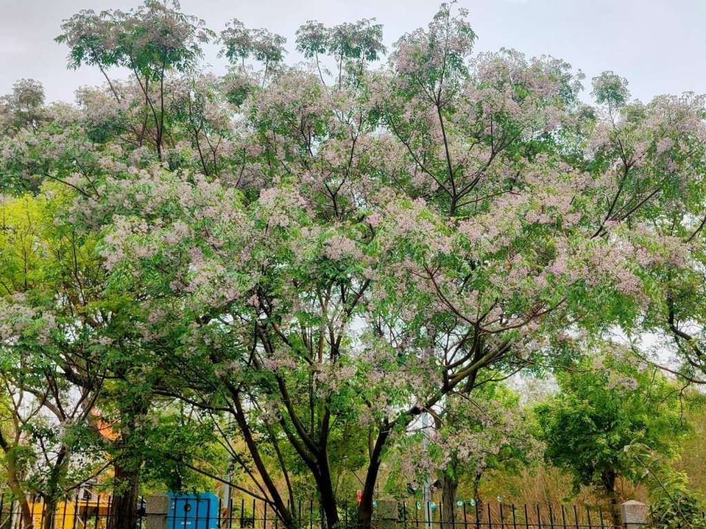 如果你還沒戀上苦楝優雅的淡紫,一定要去關西圖書館旁看看,新竹市鷹王肉圓和園區二路,台積12廠旁,有著茂盛的苦楝!