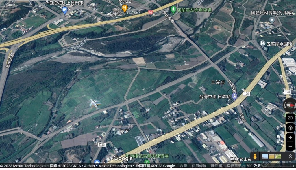 小編沿著頭前溪的引水道往前,從中正大橋底下,又經過了幾片農田,可惜往前路況漸差當天預留時間也不足,就沒能見到引水口,但從goolge地圖上看剛好有一架飛機經過附近,覺得非常有趣。