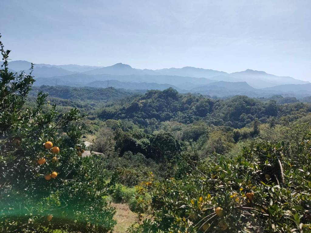 石井村盛產柑橘,從石峰道路看去,柑橘園和雪山山脈、樂山、鵝公髻山真是讓人感嘆是最美農村