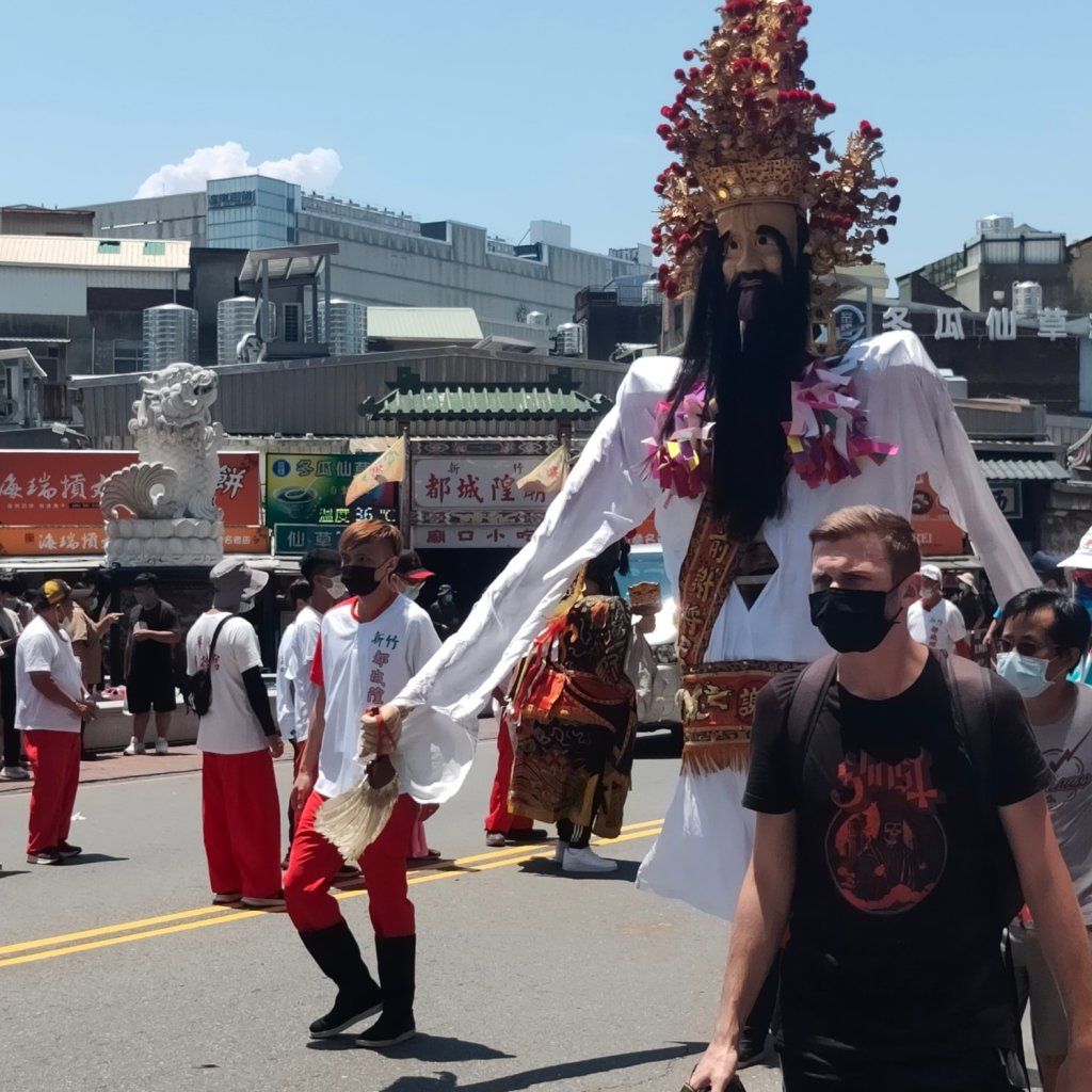 去年因疫情取消,今年中午看著廟會,路上民眾說好久沒這麼熱鬧了。