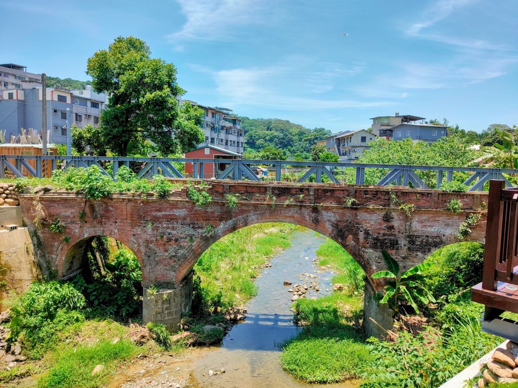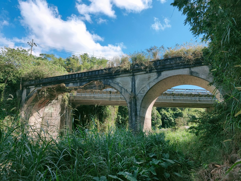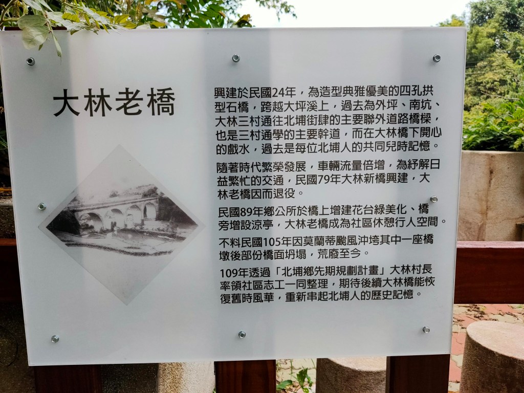 繼續行經大林橋與竹塹地母廟,可見 大林老橋跨於溪上,建於民國24年的四孔石拱橋,過去為大林、外坪、南坑的聯外道路,也是早年居民戲水遊憩的地方。地母廟上放的聚落同時保有三合院、日式建築也可看曬梅乾菜,透露著優雅的生活節奏。