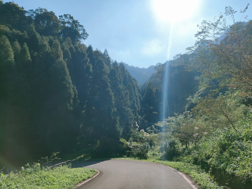 繼續往南庄前進,一路上是造林的痕跡與杉木,也有腳踏車騎士行經此段,早年一路通往苗栗的四十二份腦寮遍佈,如今人煙稀少倒也形成了像是桃花源的一景。