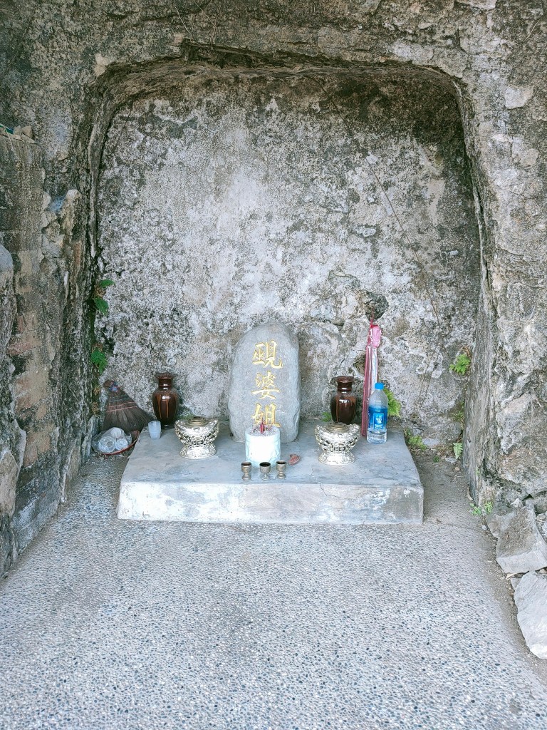 而一旁的山洞中供奉 「覡婆姐」一說覡婆姊是橫山人,又說為清同治5年芎林人,未婚,懂醫術也會接生、收驚、作媒,長年四處奔走,為眾人治病,一次溪水暴漲意外,不幸在芎林石碧潭溺斃死後,眾人照樣尊敬她,祭拜求藥單,非常靈驗,民國70年間,大家樂盛「石婆姐」神位被人偷走,後有人從新刻神位供人祭拜。