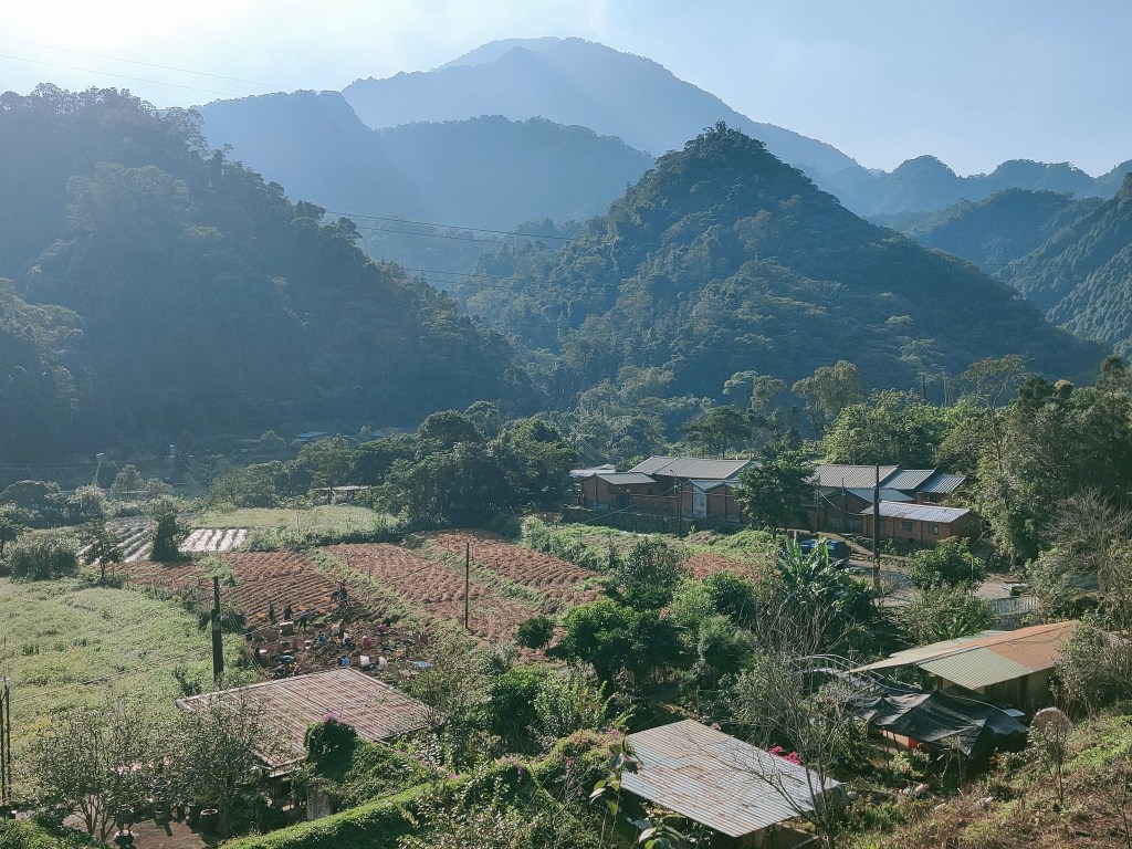 進到南外社區前,可以眺望大坪山,在桐花季時有著滿山的桐花。