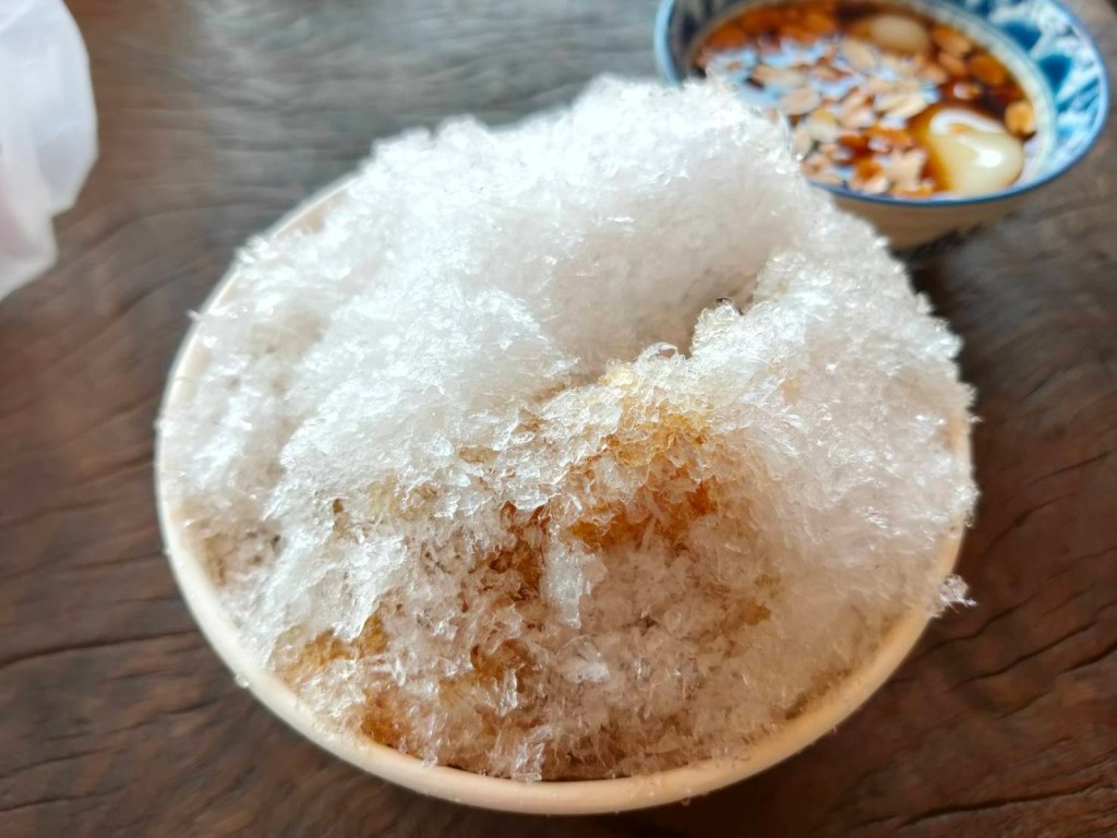 以往老闆夏日賣米苔目冰,冬日賣牛汶水,今年兩者都同時賣,一口冰,一口熱粢粑交互著吃,更讓人滿足。