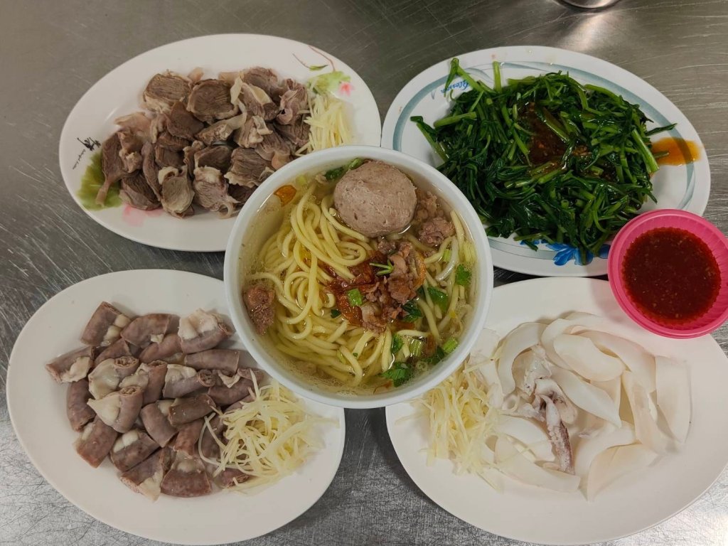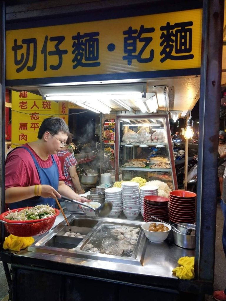 西大路麥當勞旁的麵攤,從餐車轉成店面,肝連肉與大骨熬出的精華湯頭,成為貢丸湯麵的靈魂。一碗麵加上兩盤小菜,是小編和老婆宵夜的最愛。