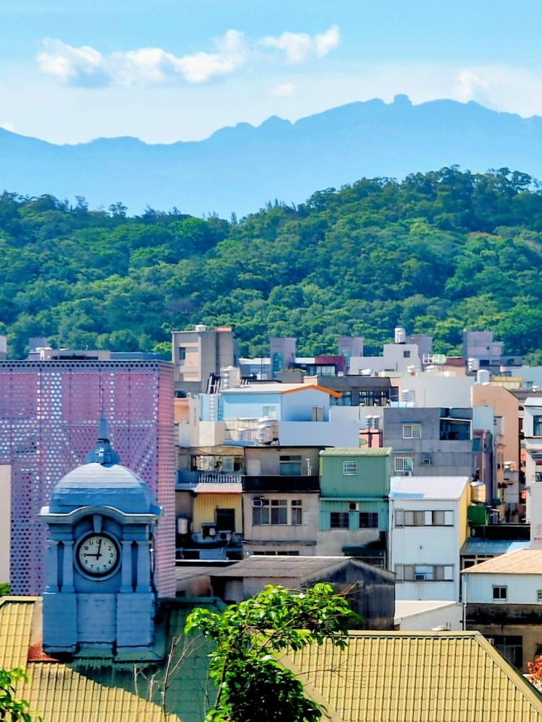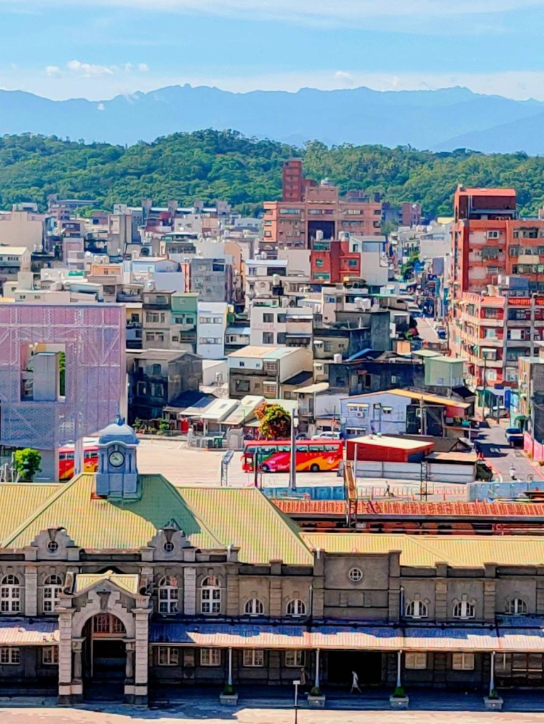 新竹火車站與雪山主峰到大霸尖山的聖稜線,形成最美的天際線。