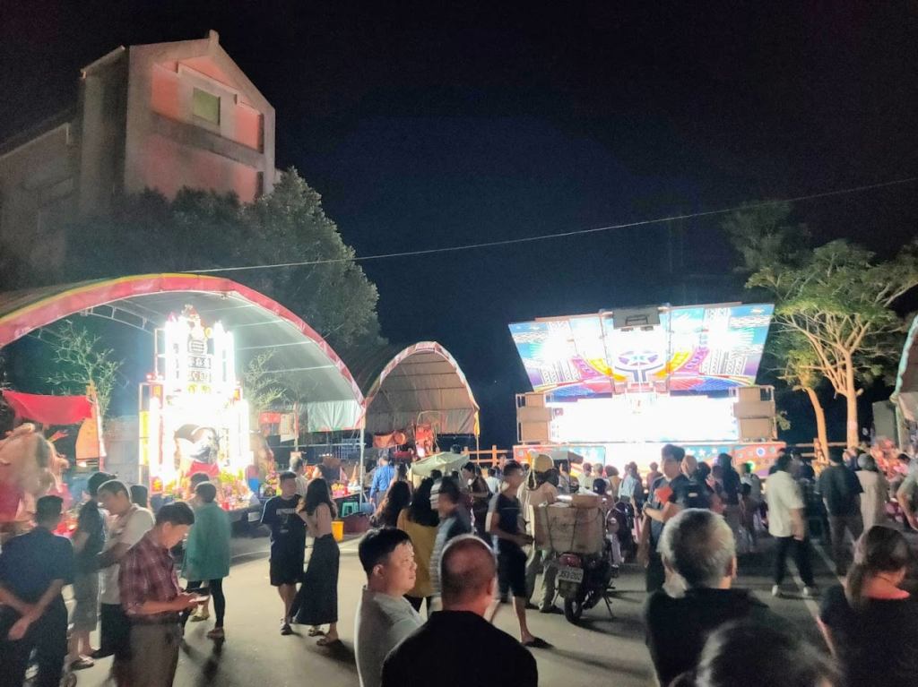 峨眉富興:大家擠在隆聖宮前,忙個祭拜、聊天、看平安戲!阿叔親切的跟我提到這裡的神豬神羊是縣長的,還很熱心地叫我快去看旁邊的舞台表演,有很漂亮的小姐。小編到是在普渡供品區繞了幾圈,感受富興的熱鬧,跟在地的鄉親一起感受這十五年的熱鬧!