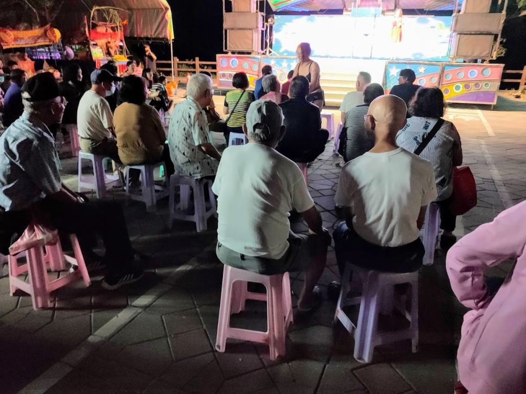 跳著鋼管的小姐姐到場下去,僅僅是以握手跟鄉親打招呼! 倒是很難得聽到了有客家歌曲的演出 (讓小編掏了小費)。而丹桂宮前則是道士的超渡、平安戲,年輕人在旁邊的峨眉國小打著球。