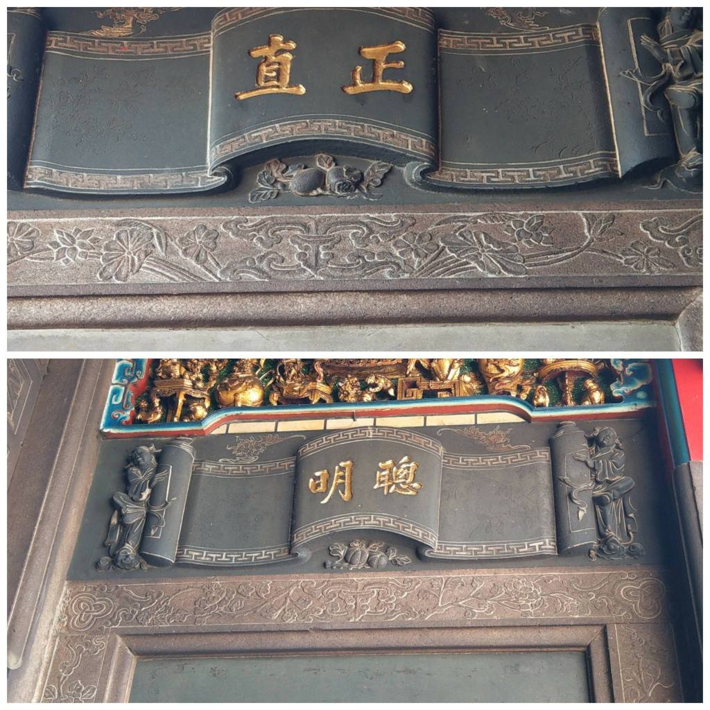 大殿屋頂懸掛「金門保障」匾額,為光緒帝所賜金匾。城隍廟入口兩側牆面的「正直」、「聰明」四字,為臺灣唯一的溥儀御筆。