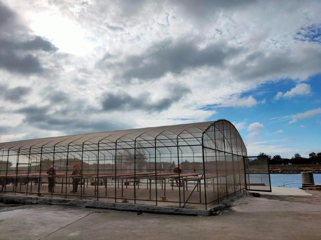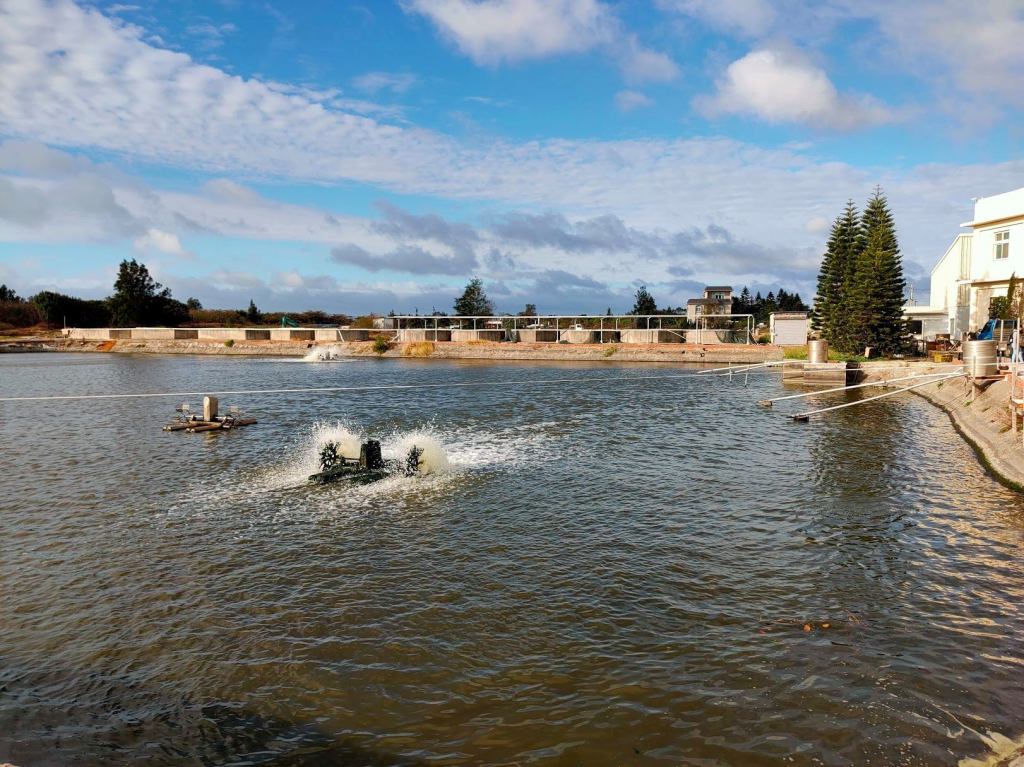 竹魚水產與網室 一旁是養殖場 還看的魚跳出水面