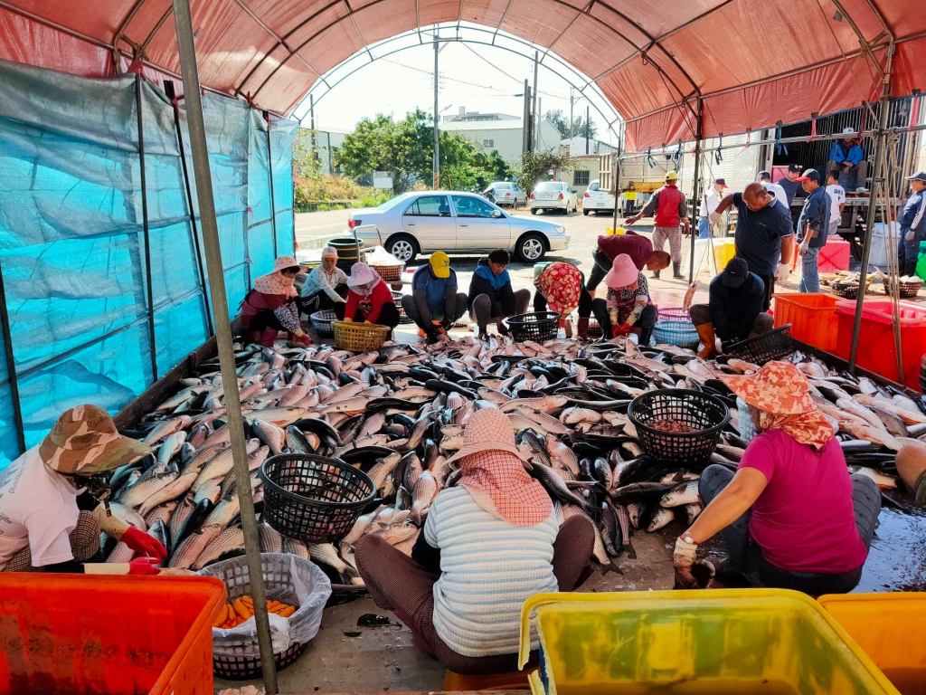 往年收成後,大概都只有零星數量的魚躲藏在池底。在波折的2020居然有四百尾"漏網之魚",於是在附近惠民宮的拜拜上,竹魚水產便將烏魚分送給鄰居與信徒們。老闆娘說,#這大概是媽祖的旨意,#希望大家可以過個好年。