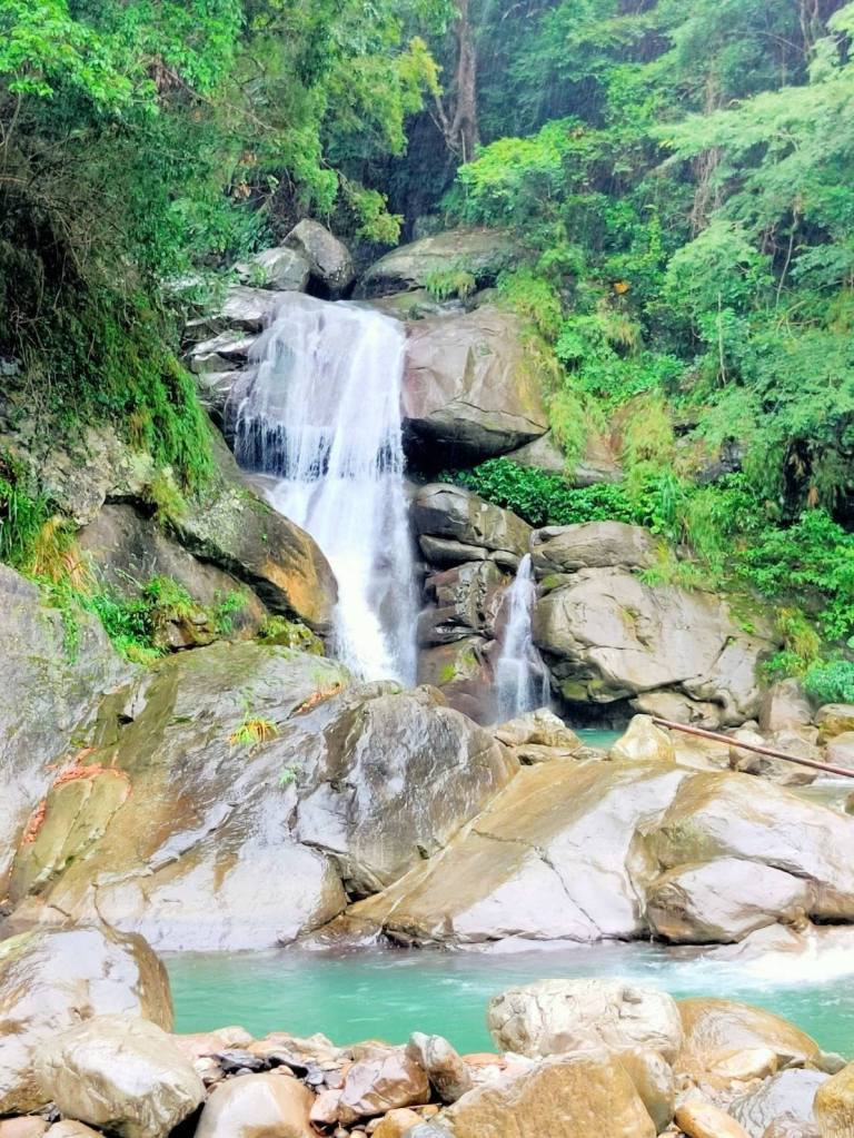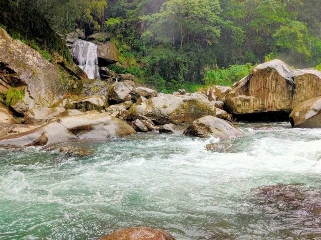 比麟瀑布溪水較大,務必注意環境與山區下雨情況。(是縣府公告的危險水域)