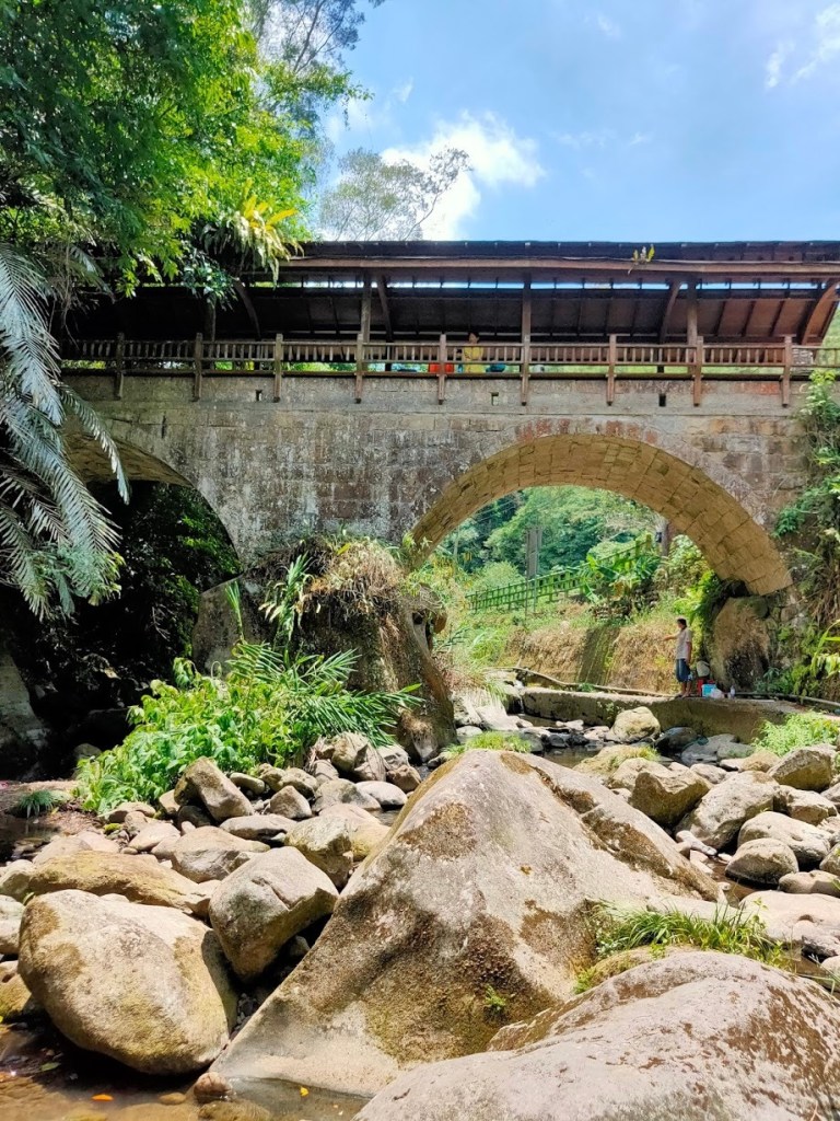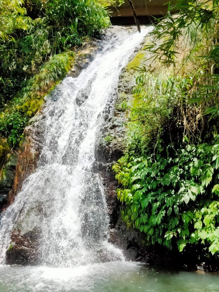 而在瀑布前方500公尺有聯安橋,而瀑布後方約100公尺也有一糯米橋與百年伯公廟,在石橋下遮陽戲水時也不要忘了欣賞糯米橋,而沿著樓梯走上百年伯公廟,伯公就像從樹梢透出的陽光,照顧著大家。從地圖上可以看到豐鄉村有五座糯米橋,其中三座位於騎龍古道。喜愛糯米橋的朋友一定要來朝聖一翻。