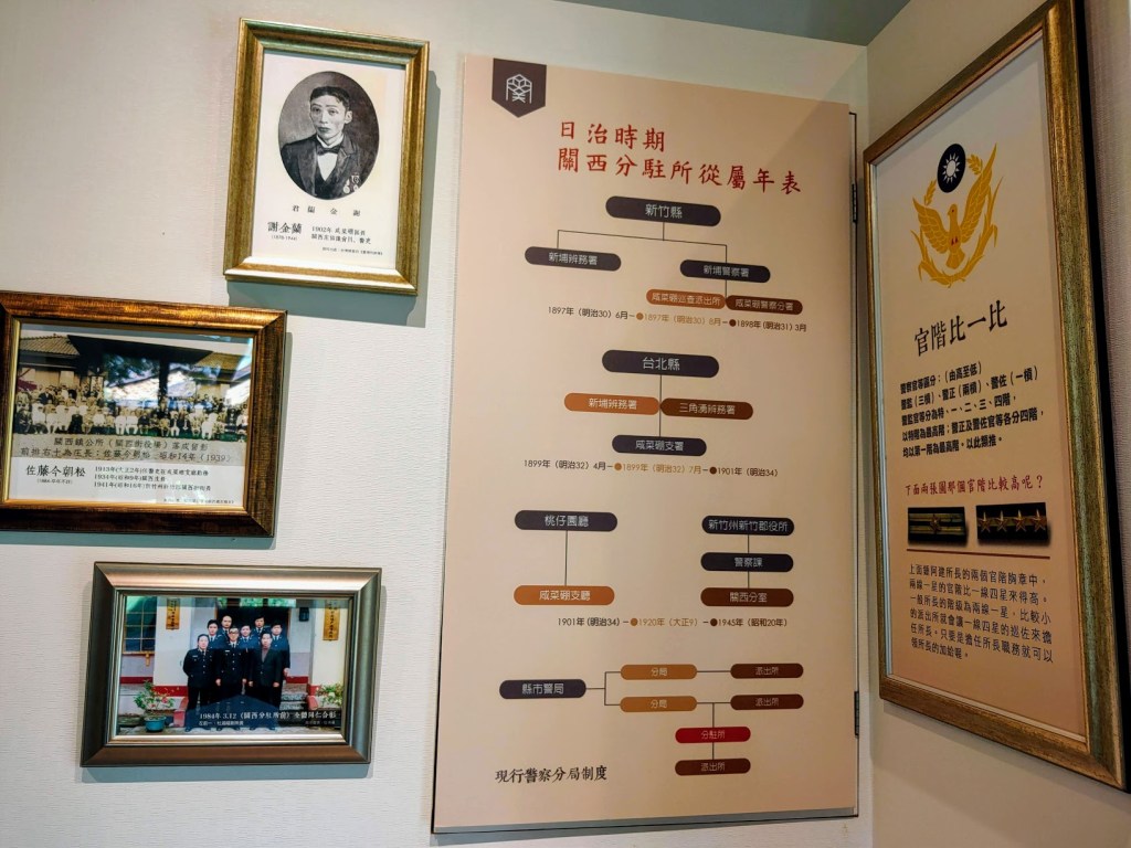 關西分駐所為竹縣內唯一派出所縣定古蹟,而近期修復的所長宿舍以及警員宿舍則為日式木造建築物,在修復後可以看得出許多早期建築的細節,最後一任所長鍾阿建的舊物見證當年的恪忠職守,
