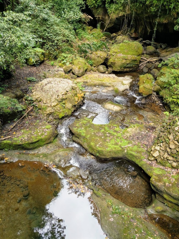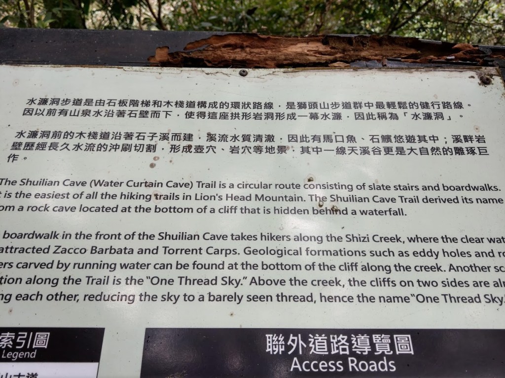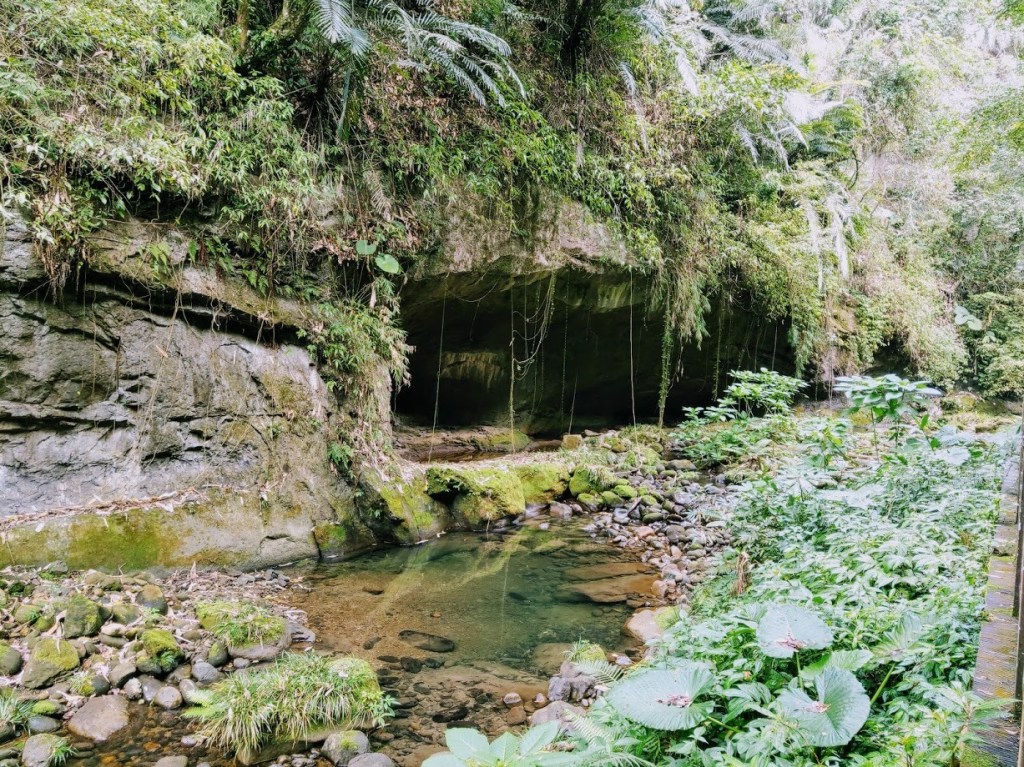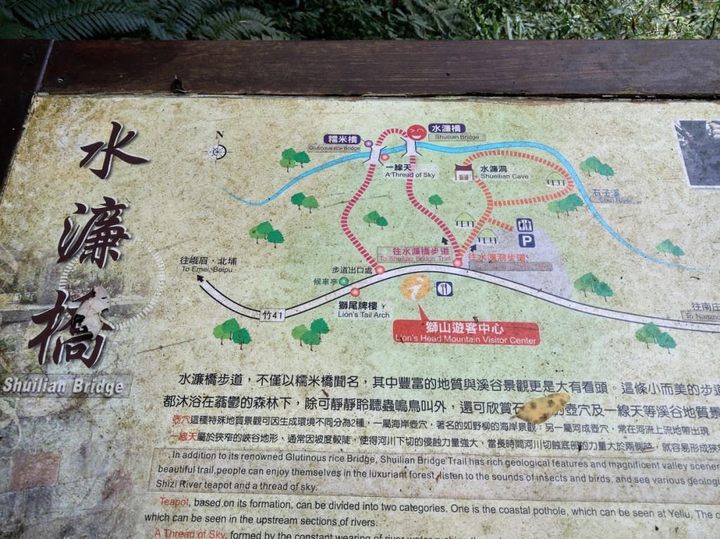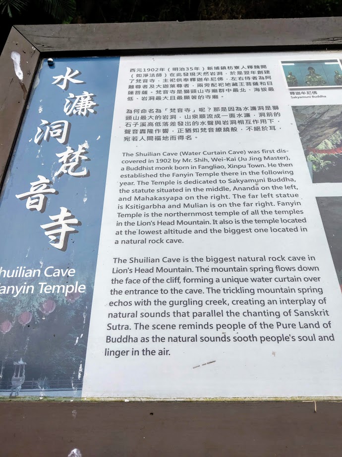 #水濂洞為獅頭山最大的岩洞,#因有山泉水沿著石壁而下形成一幕水濂,因此稱為「水濂洞」。西元1902年(清光緒28明治35)時新埔枋寮人釋魏開大師在此發現天然岩洞,在水濂洞旁建梵音寺,#因水濂洞前的溪水潺潺有如梵音。水濂橋與水濂洞步道的壺穴地形讓步道走起來更多了幾分秘境的感覺!