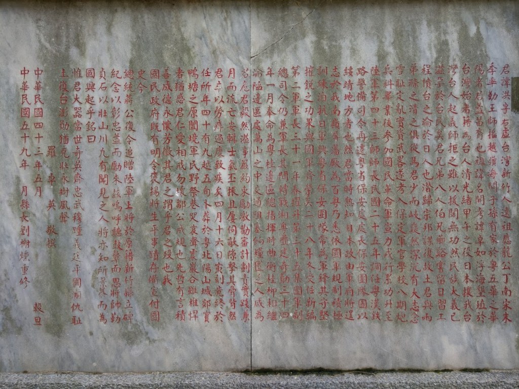 鄒洪上將紀念碑:鄒洪是 #新竹芎林客家人,#是二戰時的抗日名將,多次重挫日軍,參與長沙大捷、並且因為曾留學日本,從飛機殘骸所搜出之日軍絕密文件中,鄒洪解讀獲悉日本準備大舉南進,並預備全面發動太平洋戰爭。