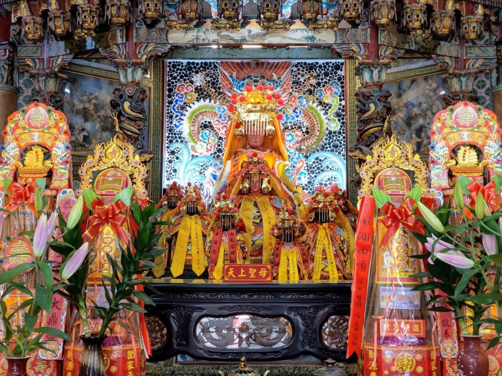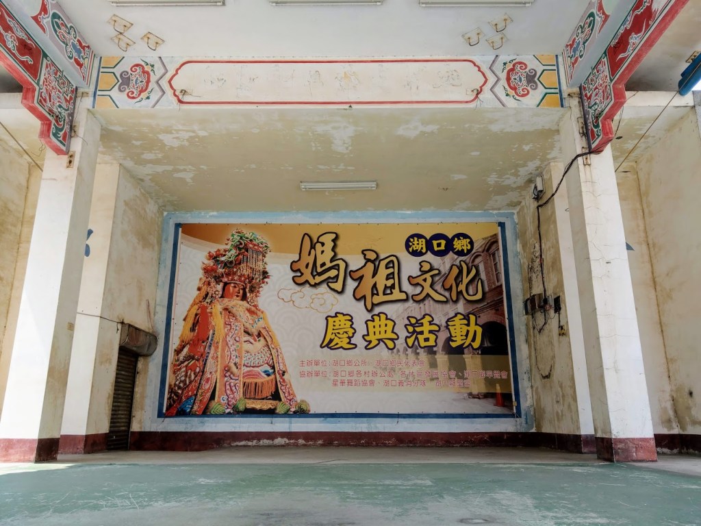 #溪南湖口顯聖宮,坐落於新湖口市區,至今已有六十餘年,是新豐湖口楊梅一帶的媽祖信仰中心。#在民國42年擴大街路時,挖到坡壆尾時,#竟發現7吋媽祖現身,而早先此地為一塊溜池,原本作為儲水灌田之用,#但奇怪的是卻常常無法儲滿池水,#且常常有『#神火』出現,眾人無不引以為異。而相較於其他多為從大陸分靈的媽祖,於溜池現身的媽祖也成為特色,故稱做顯聖宮。