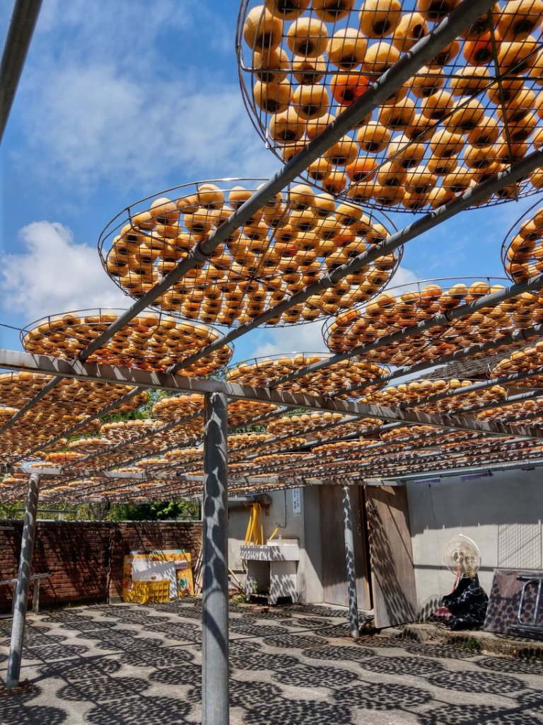 北埔的柿餅是「石柿」,秀巒山走到裡面一點就有不少柿子。黃澄澄的柿子,以及接下來的橘園和稻米,新竹縣的秋收特別美麗。