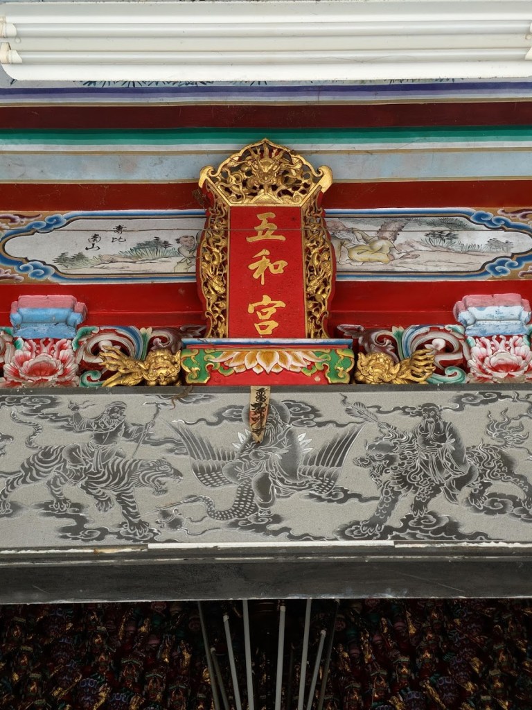 而鹿寮坑的五和宮建於清咸豐元年,也頗具特色與意義,五和宮祭拜媽祖,分靈自廣東汕頭媽嶼島(放雞山),而不是福建湄洲,媽祖誕辰時廟方會將雞放生,來紀念祖廟,屬於客家人文化的媽祖。五和指的是鹿寮坑、山豬湖、橫山、沙坑、大肚,從五和宮望向竹東、橫山風景美麗,就靜靜地甚麼也不做,彷彿融入大自然中。2005年,芎林五和宮廟方與新竹長和宮作首次閩、客媽祖連袂出巡。走進五龍村的巷子裡,戶戶門口都是義民九芎林祭典區的旌旗,而樸實的巷弄讓人流連忘返,如果有時間去一趟芎林,可不要錯過了。