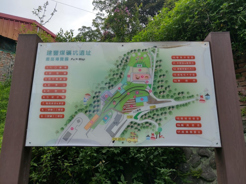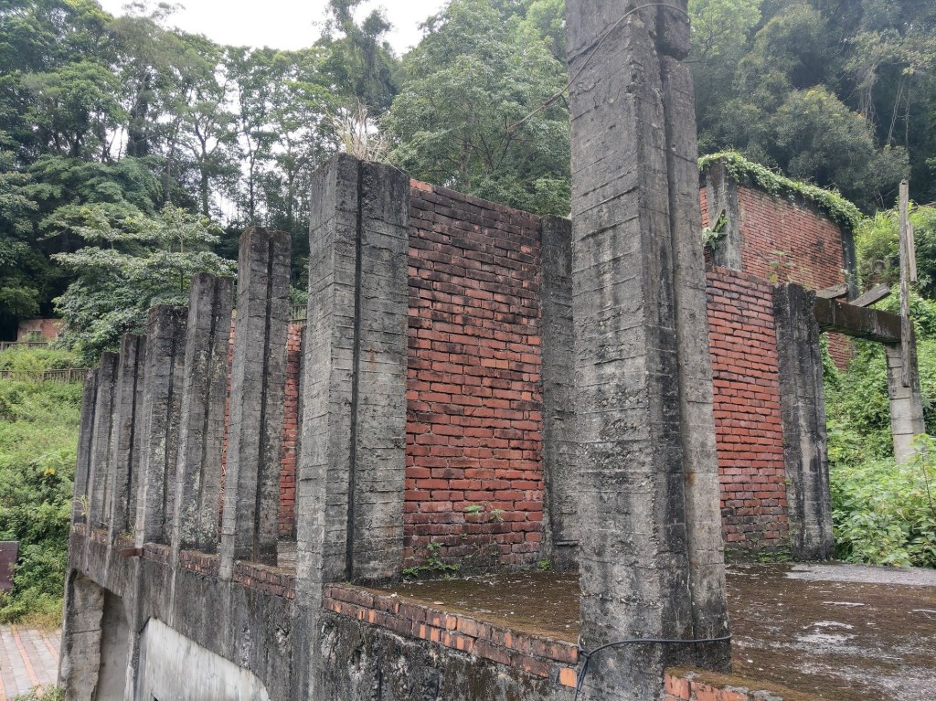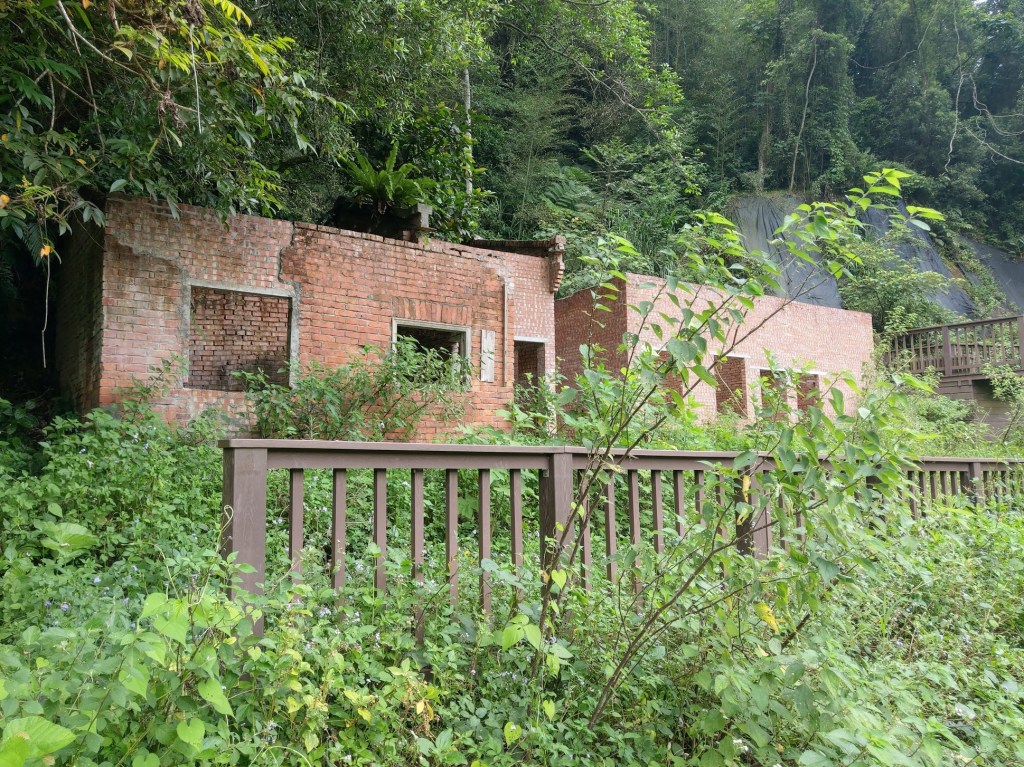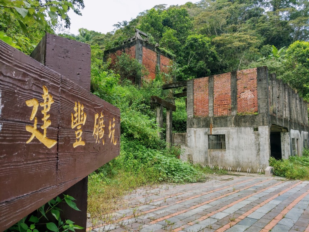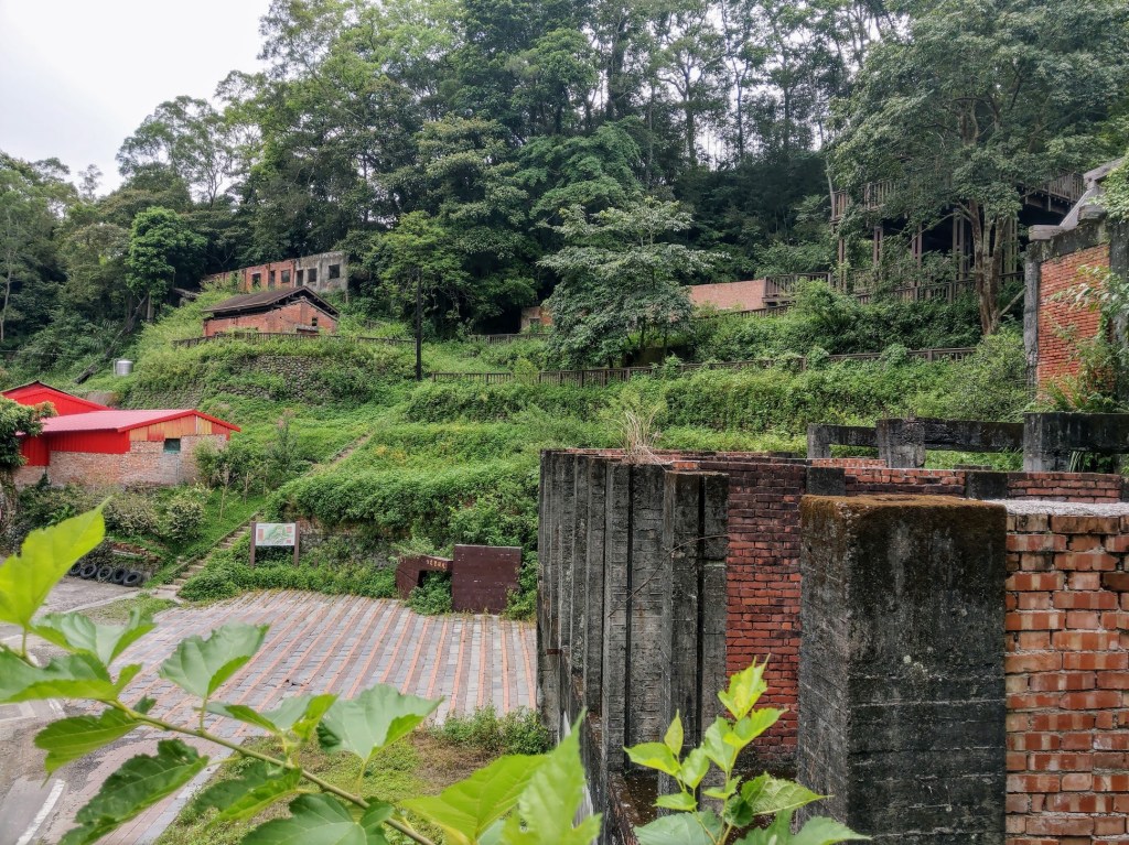 從旁邊的小路彎上去,還可以看到當年纜車基座的遺跡。在前幾年整修過的建豐礦坑近期因為經費不足,又再度被雜草掩蓋,明明在眼前的鐵軌卻被草叢完全掩蓋。阿婆說,三個月不除草就長很高了,而礦坑口已經封起來,因為很深也有危險。