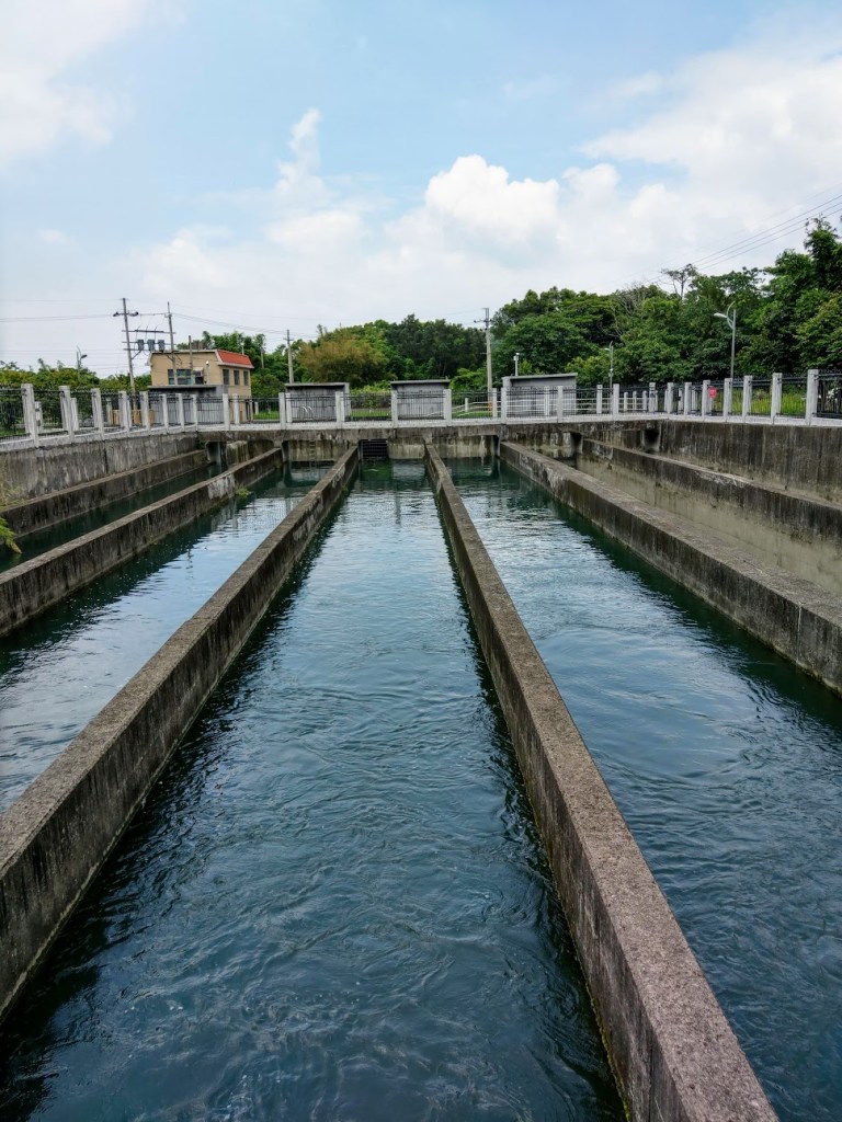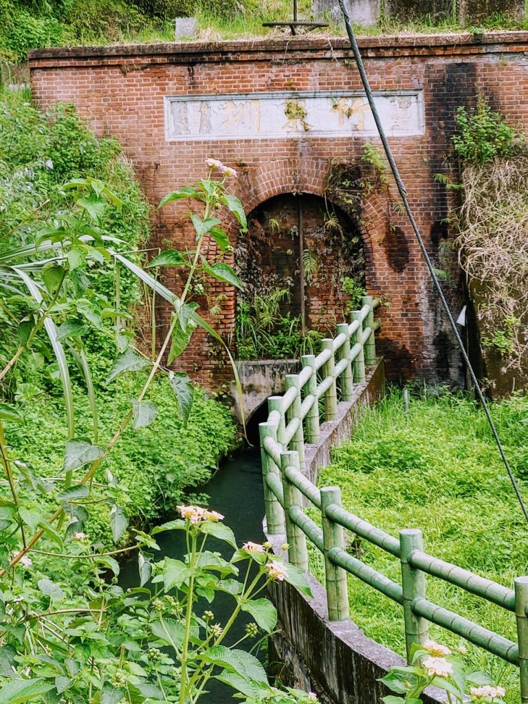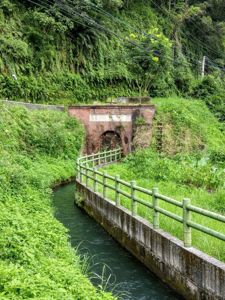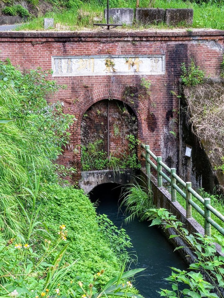 第一隧道口造型以紅磚建照,造型優美,上面刻有「竹東圳」等幾個大字。站在上坪溪取水口與沉澱池前,看著清澈的河水流動,非常壯觀,心中無限感恩。就是這樣的河水養育了大半個新竹縣市,從民生到工業。