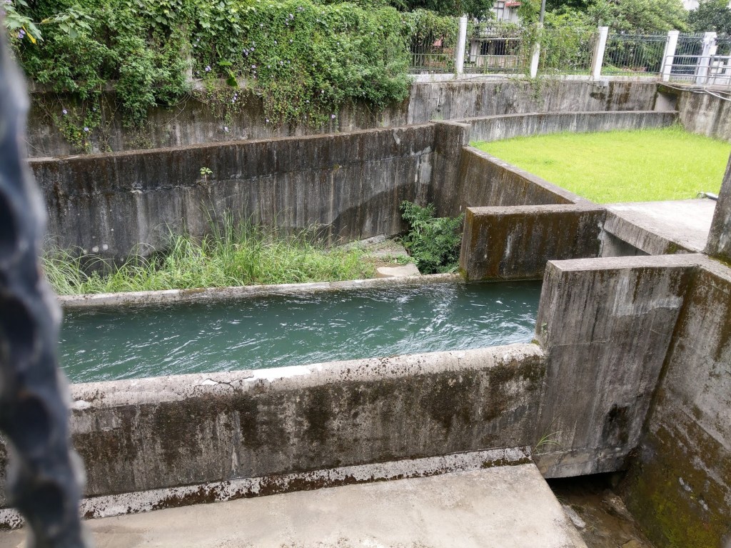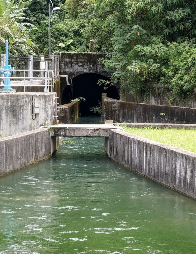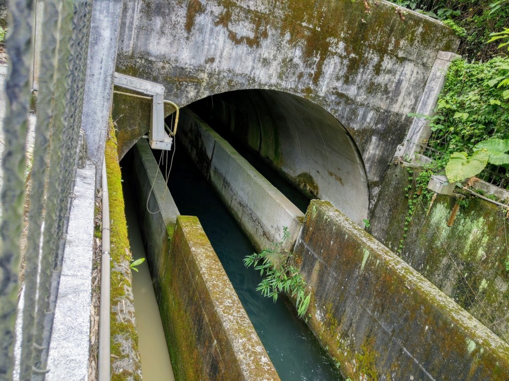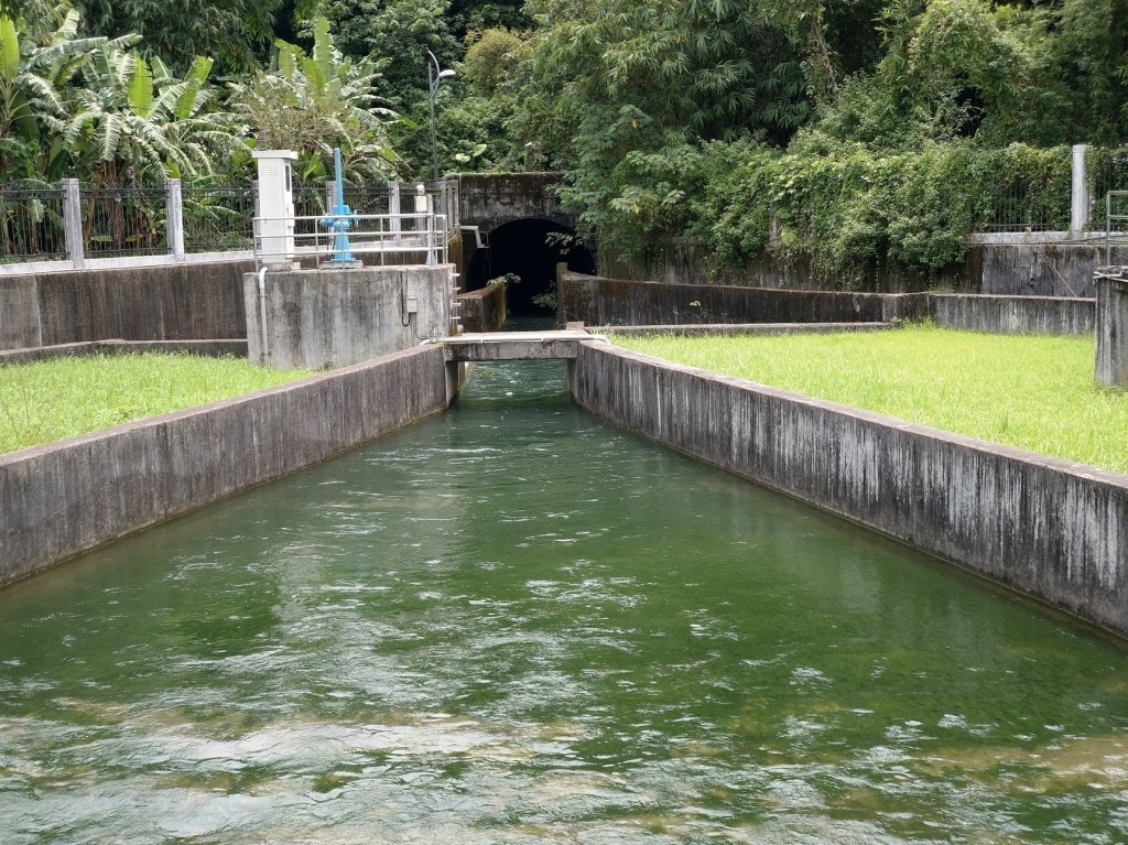 第一隧道口造型以紅磚建照,造型優美,上面刻有「竹東圳」等幾個大字。站在上坪溪取水口與沉澱池前,看著清澈的河水流動,非常壯觀,心中無限感恩。就是這樣的河水養育了大半個新竹縣市,從民生到工業。