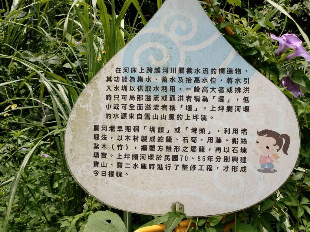 而上坪溪和油羅溪在芎林竹東橫山的交界處匯合後,形成了人稱新竹母親河頭前溪,我想上坪溪和竹東圳的帶給新竹的意義,並不小於頭前溪。而過了攔河堰的上坪溪水量也減少了。