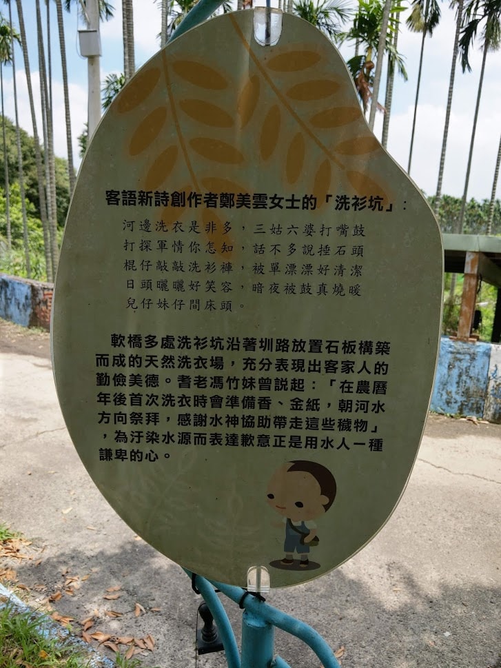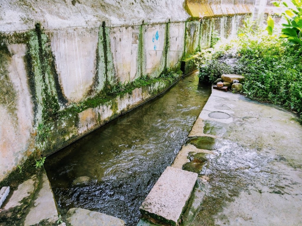 沿著水圳可見的洗衫坑,現今仍有不少居民使用,小編也停下來清洗了一下,水質乾淨又清涼,當然各地都有的伯公廟軟橋也有。而軟橋更是竹東圳的源頭與供應寶山、寶二水庫上坪河的位置,跟大新竹的發展息息相關,請待下篇文章喲。