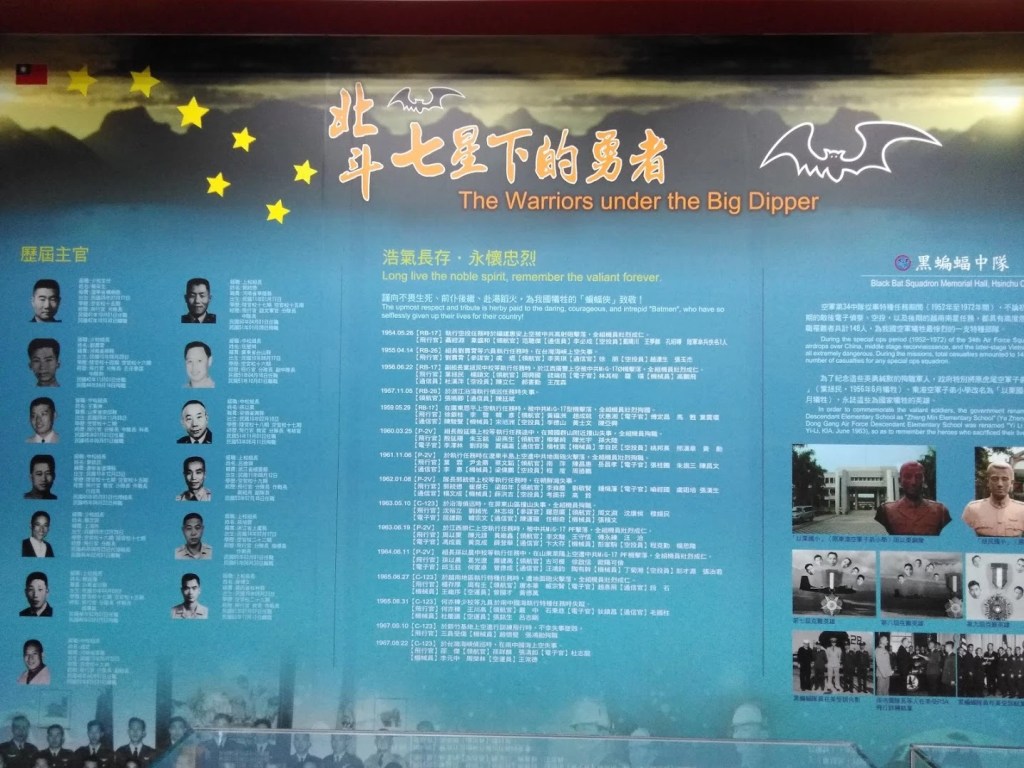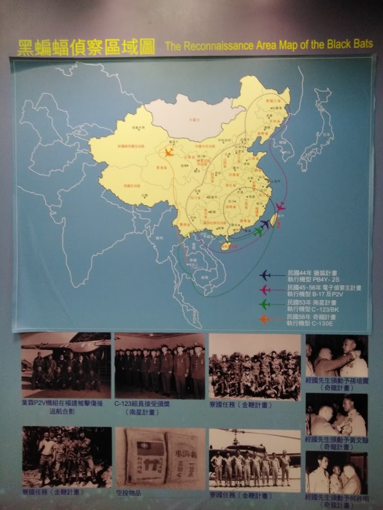 中華民國空軍34中隊駐防新竹,進行夜間偵察任務情形與 晝伏夜出的蝙蝠相同,因此以「蝙蝠中隊」命名,而所屬偵察機均漆成黑色,而又稱作「黑蝙蝠」。空軍共出動八百多次,十五架墜毀,殉難者達一四八人。1953年韓戰結束, 美國渴望蒐集中華人民共和國的電子情報,同時中華民國政府方撤退到臺灣亟需美援。為了維繫美臺關係,台美以「西方公司」為掩護,由美方提供飛機及必要器材。中華民國空軍於西元1958年成立34(黑蝙蝠)和35中隊(黑貓中隊),直接受命於國安會秘書長 蔣經國,專門替美國蒐集情報。在清大思沙龍曾提及,當時 蔣經國對美國表達不滿,這樣簡直是叫中華民國空軍去送死(偵察機沒有防衛能力),但礙於美援壓力只能屈服。而黑蝙蝠是低空偵測,比起黑貓中隊又危險許多。記得清大思沙龍中,飛行員在大陸上空聽到飛機廣播中傳出父親勸降的聲音。大時代的故事與沉重,遠非現在我們能想像。