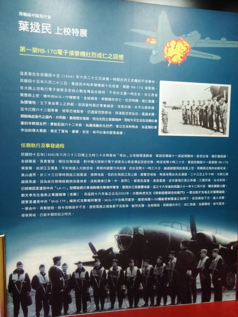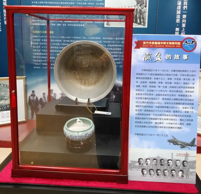 執勤失事的飛行官尹金鼎遺孀楊昭蓀,八十七年到遼東半島悼念夫婿時,當地人送給她一只飛機殘骸做成的臉盆,及現場帶回的泥土,做歷史的見證。