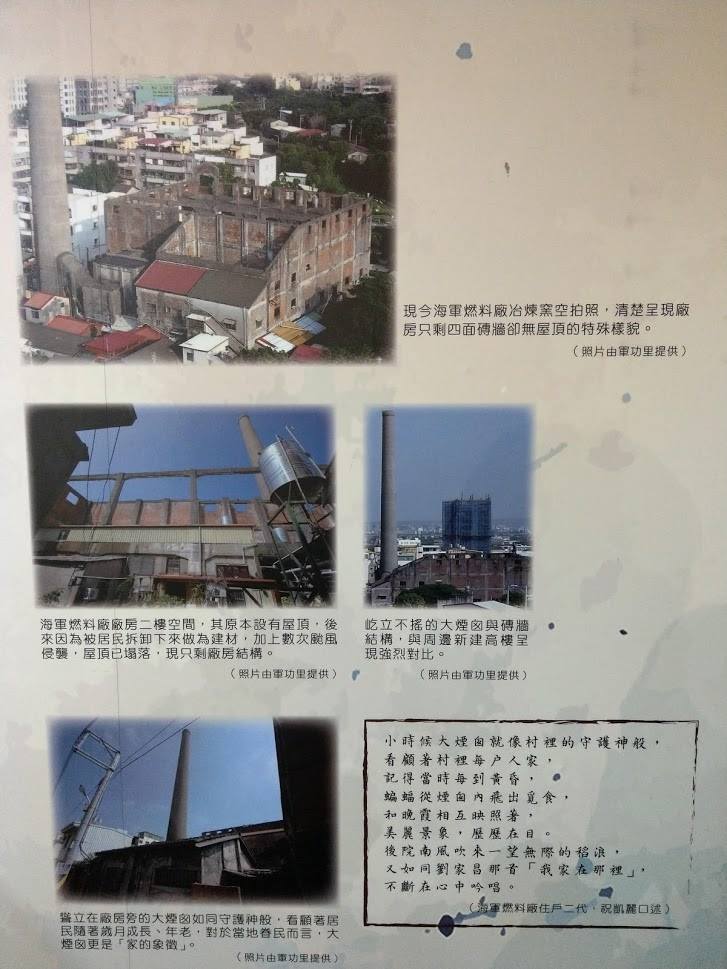 「大煙囪」,是台灣現存最大規模二戰軍事工業遺址群。國民政府來台時,無法分配到眷舍的自建戶,一點一滴靠著自己的力量改建廠房的設施,利用原廠房空間內部搭建隔間,分戶居住形成「屋中有屋,房中有樓」特殊景觀。