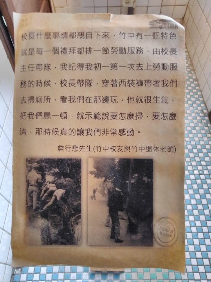 辛志平(廣東-台灣1912-1985)為民國時期竹中第一任校長,長達30年,辛校長說他一生只做兩件事,抗日和當竹中校長,歷經228時期與學生的相互幫忙。辛志平擔任校長期間,自由學風,紀律嚴明,充滿熱誠與理念,與學生建立深刻情誼。