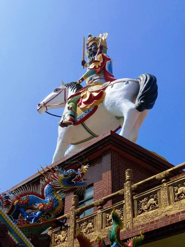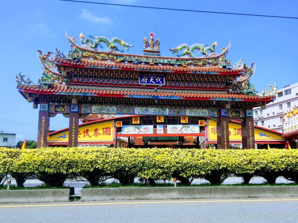 代天府主祀五府千歲,距今已有上百年歷史。廟上方有醒目的「 王爺騎白馬」雕像,相傳建廟時,有人親眼目睹1名騎著白馬購買建材的黑面男子,當地人深信這就是 池府王爺。此外代天府祀奉 林先生為古寧頭戰役的日本指揮官,根本博。而聖軍堂祀奉日本兵也為特別之處。