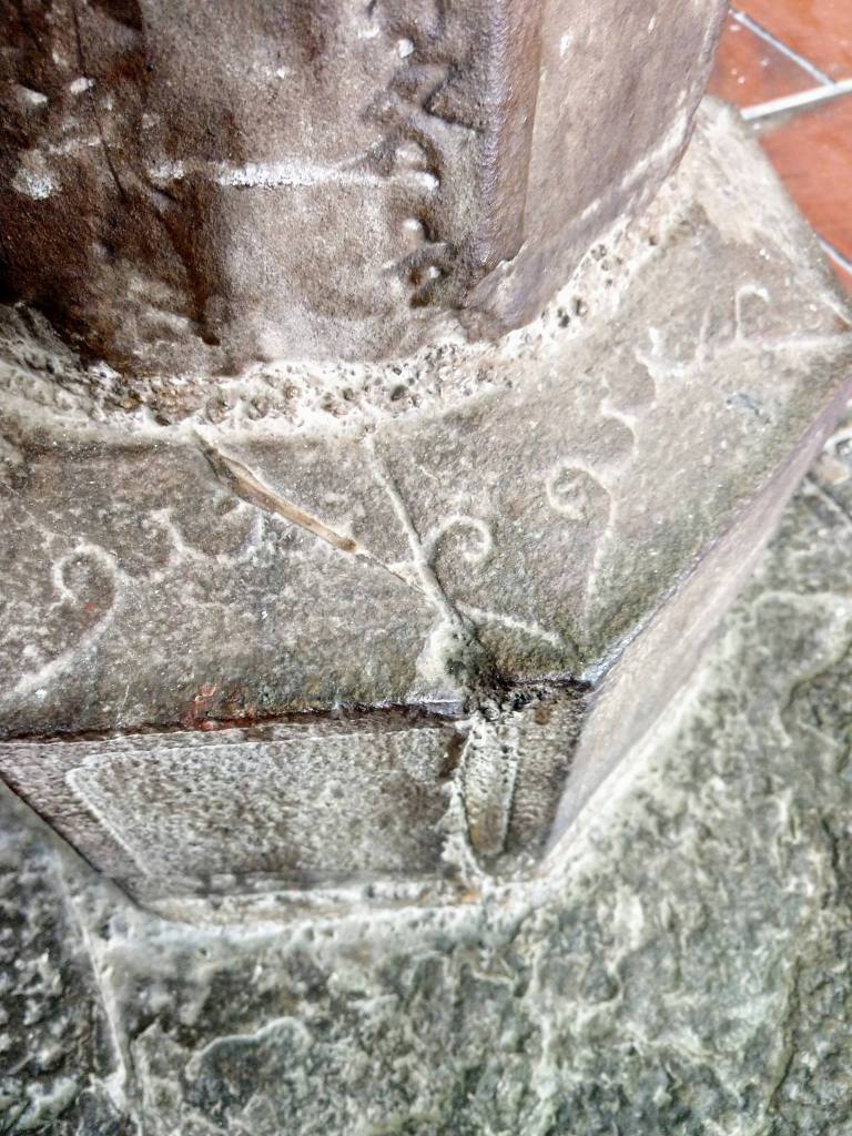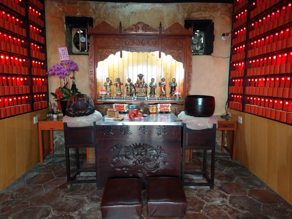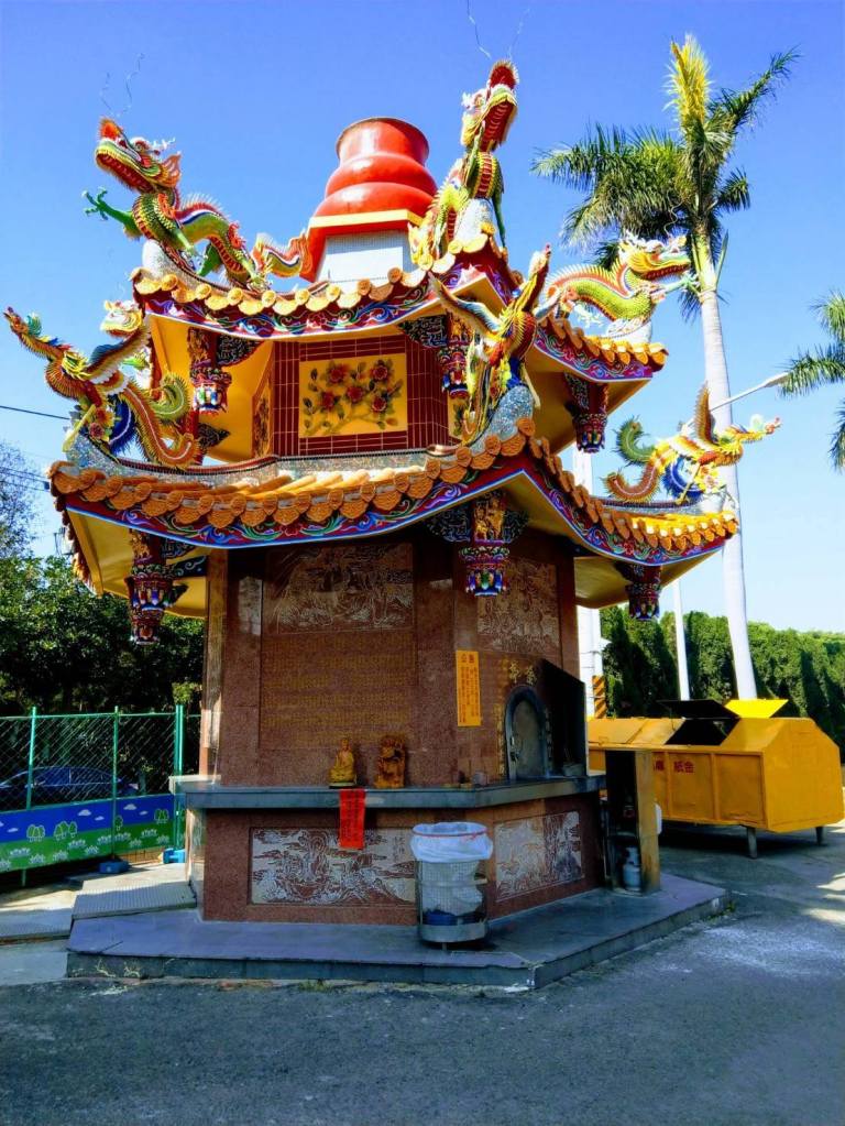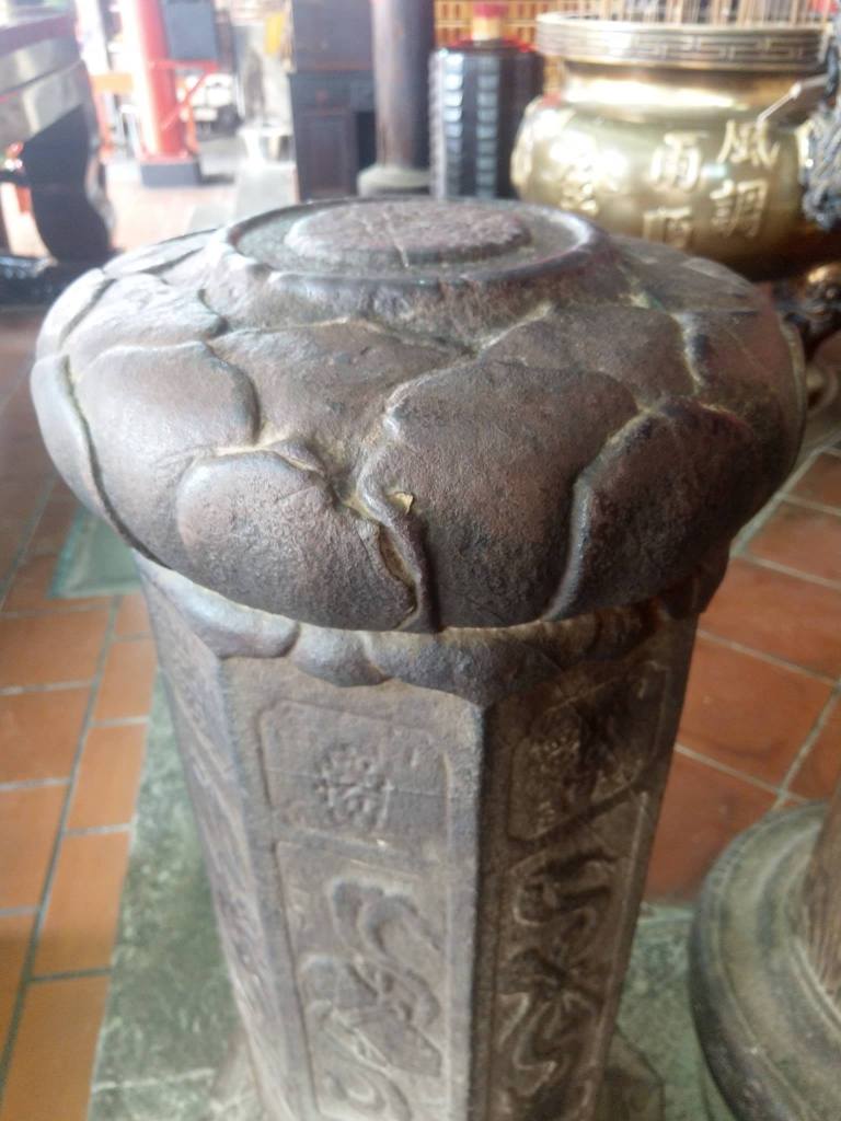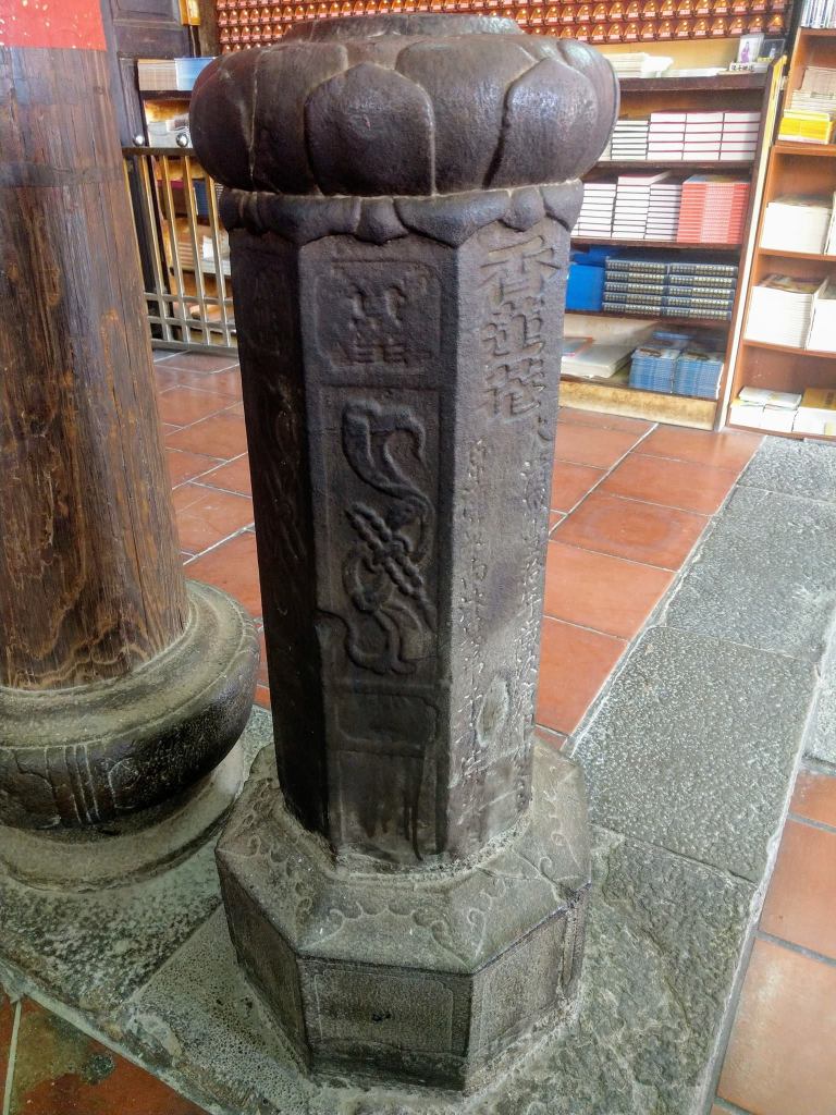 在步口廊前面有一八角形石柱,名稱有石佛柱、供食臺柱、供食台等,用以布施孤魂野鬼。高111.3公分,正八角柱邊長12公分。柱上刻有蓮花花樣,並刻有「 香蓮庵」、「 咸豐壹拾年」等字樣,應立於1860年。柱上留有 乙未戰爭時的彈孔。附有金山寺古地圖給大家參考。