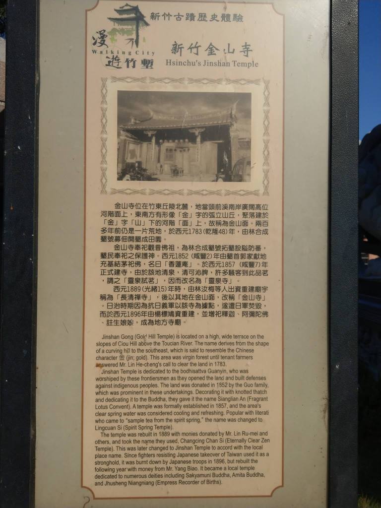 金山寺一帶原為漢番交界的丘陵地,一直到乾隆三十七年(1772)才有來自六張犁(今#竹北六家)的客家人林特魁與竹塹城閩籍「林泉興」郊號合組「林合成」墾號向竹塹社請墾金山面。