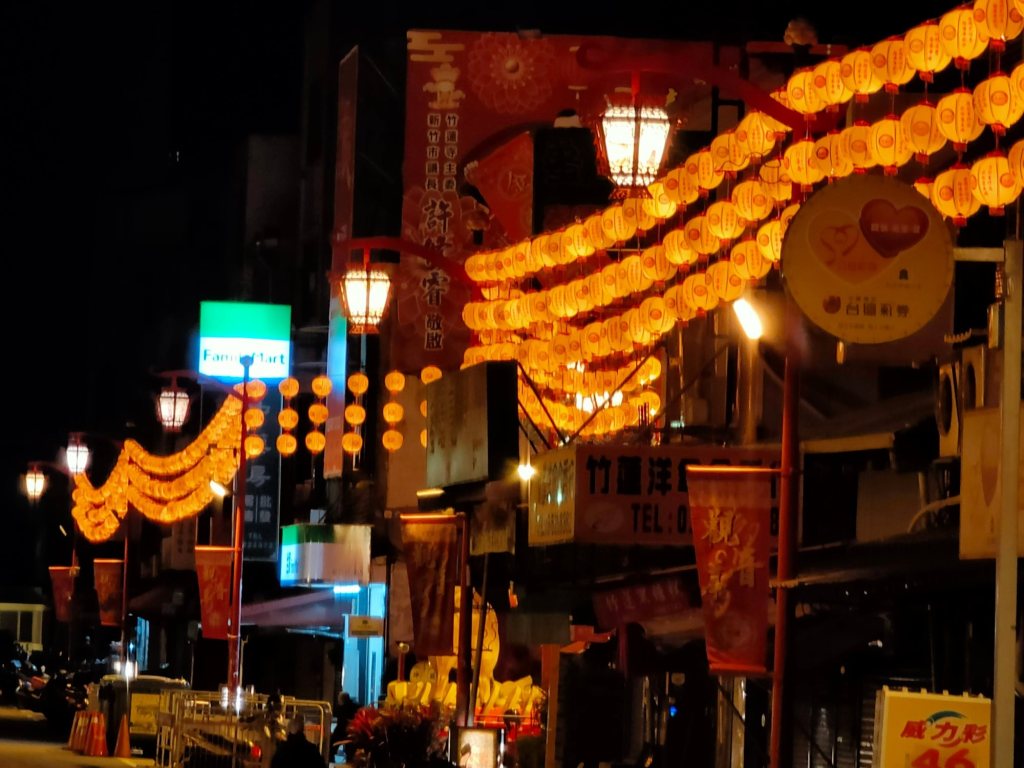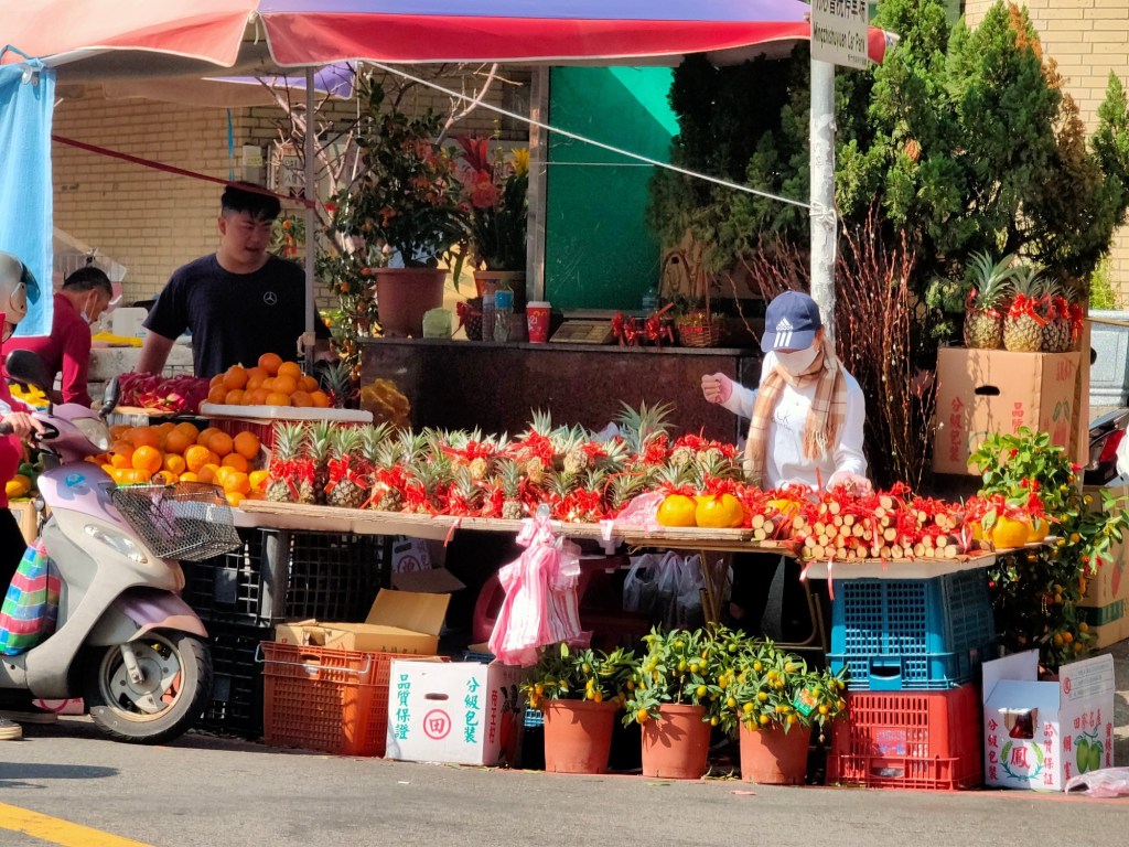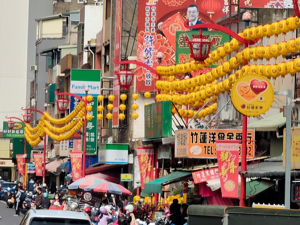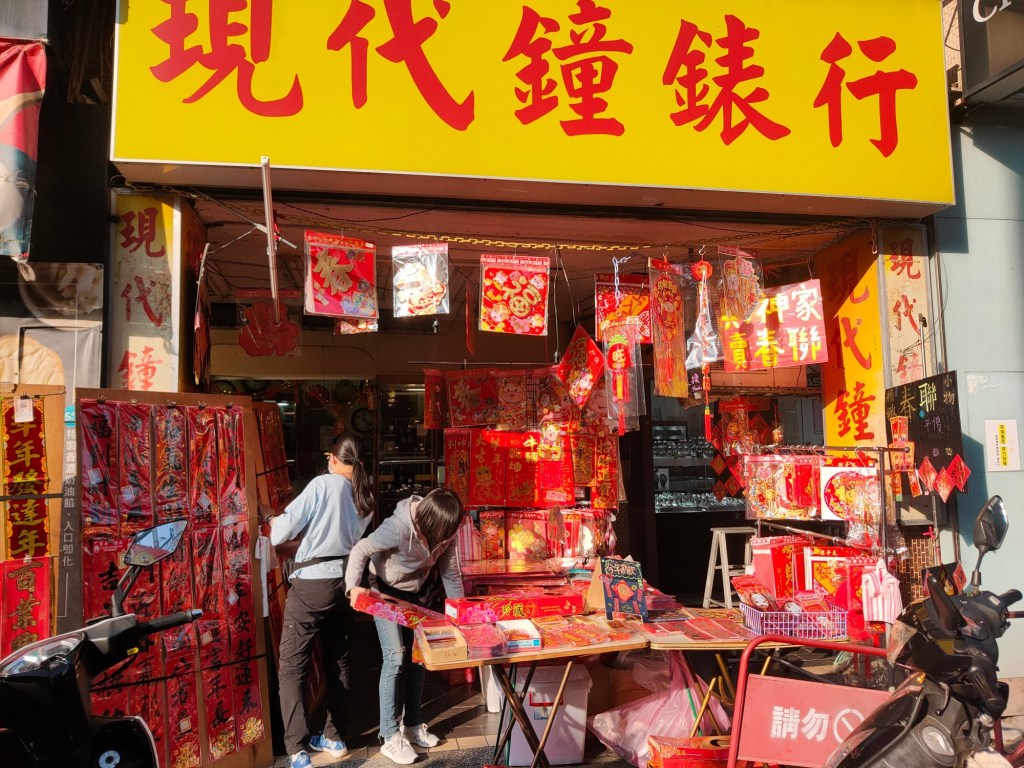 不到清晨五點,市場就已經醒了!春聯、年糕、糖果、魚肉、新衣服!城隍廟旁的彩券行擠滿人潮,園區公司的大門也換上吉祥如意!竹蓮寺旁的燈籠寫著闔家平安!