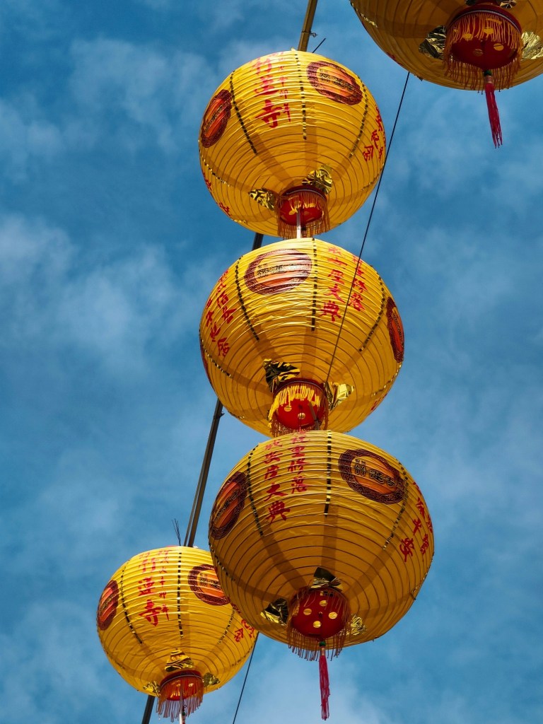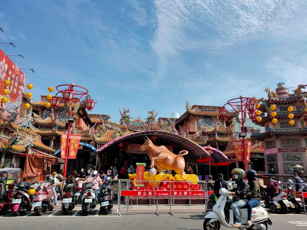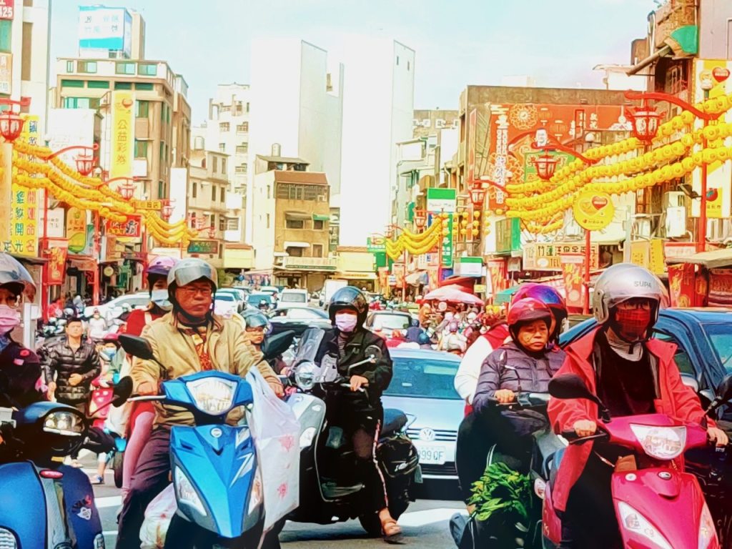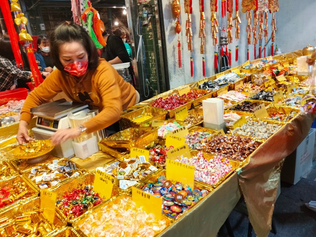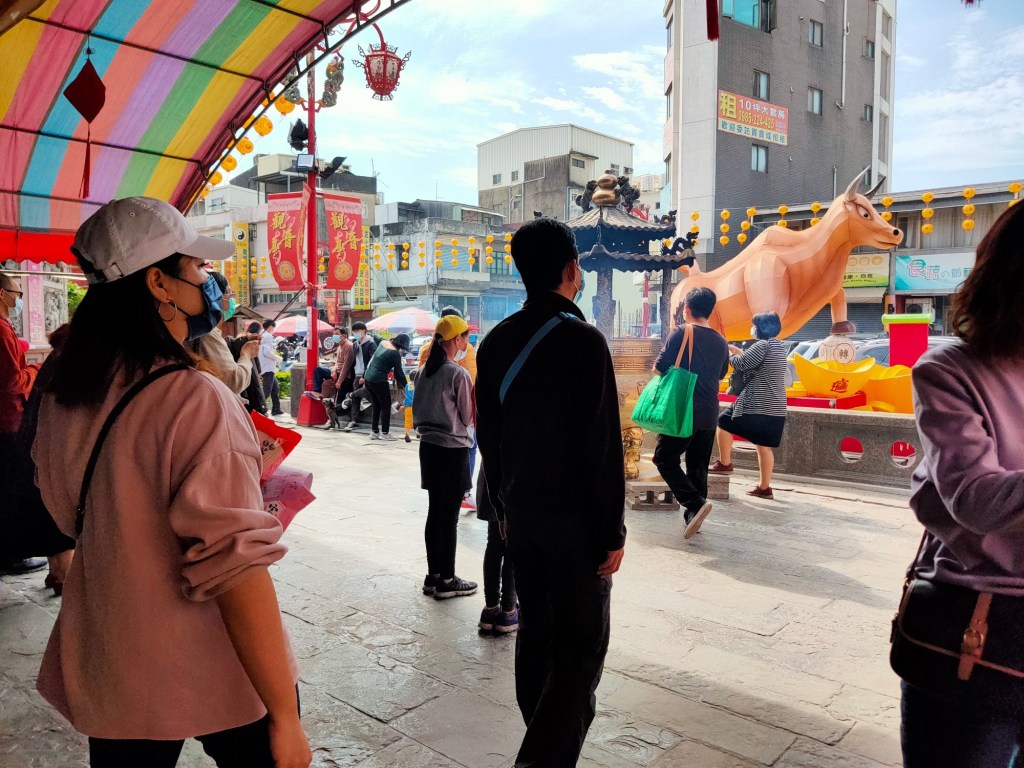 不到清晨五點,市場就已經醒了!春聯、年糕、糖果、魚肉、新衣服!城隍廟旁的彩券行擠滿人潮,園區公司的大門也換上吉祥如意!竹蓮寺旁的燈籠寫著闔家平安!