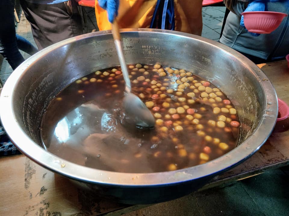 在〈吃圓仔!甜鹹都超好吃!!!〉中