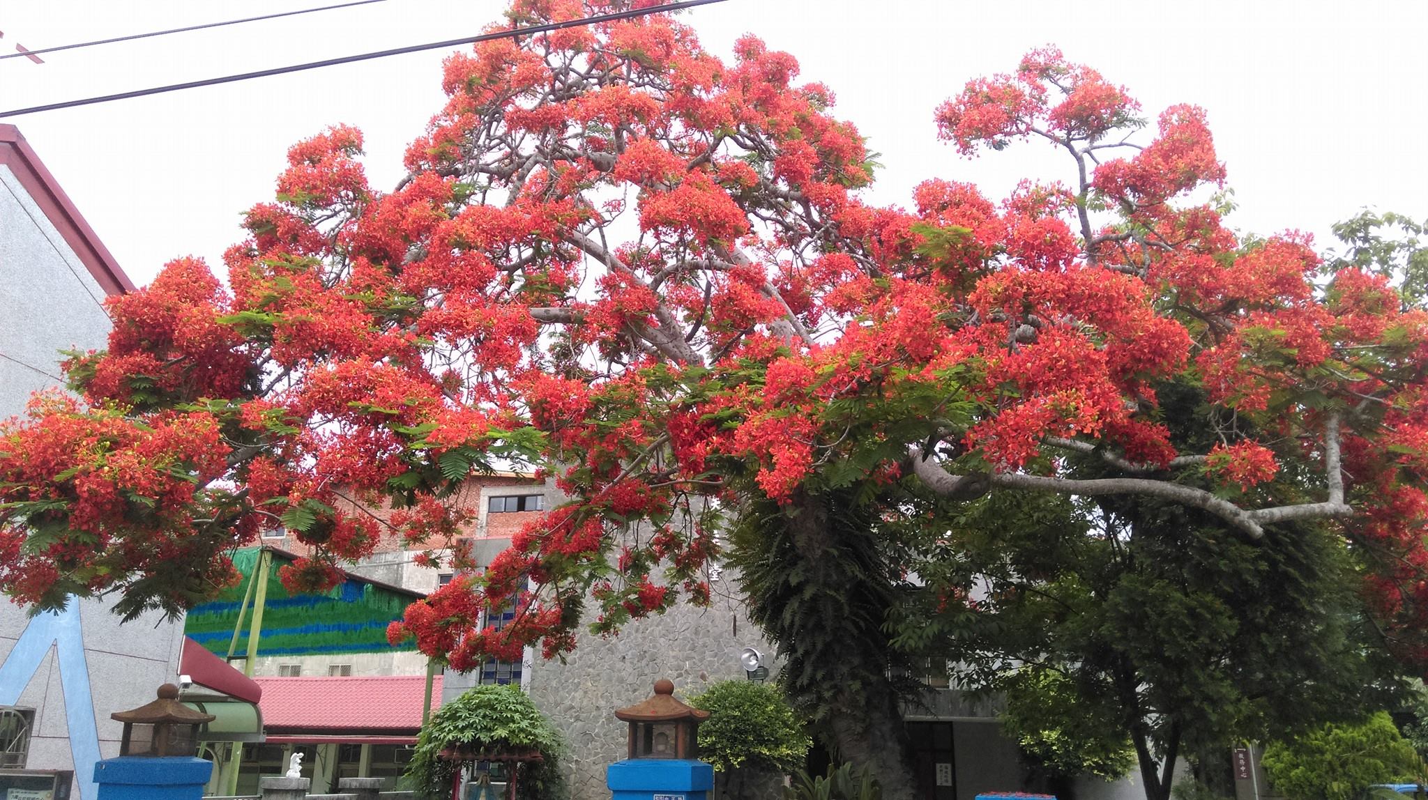 *也跟大家分享北埔天主堂鳳凰花和路口的棉花。棉花在空中飄逸很美,只可惜小編舊手機拍不出來。