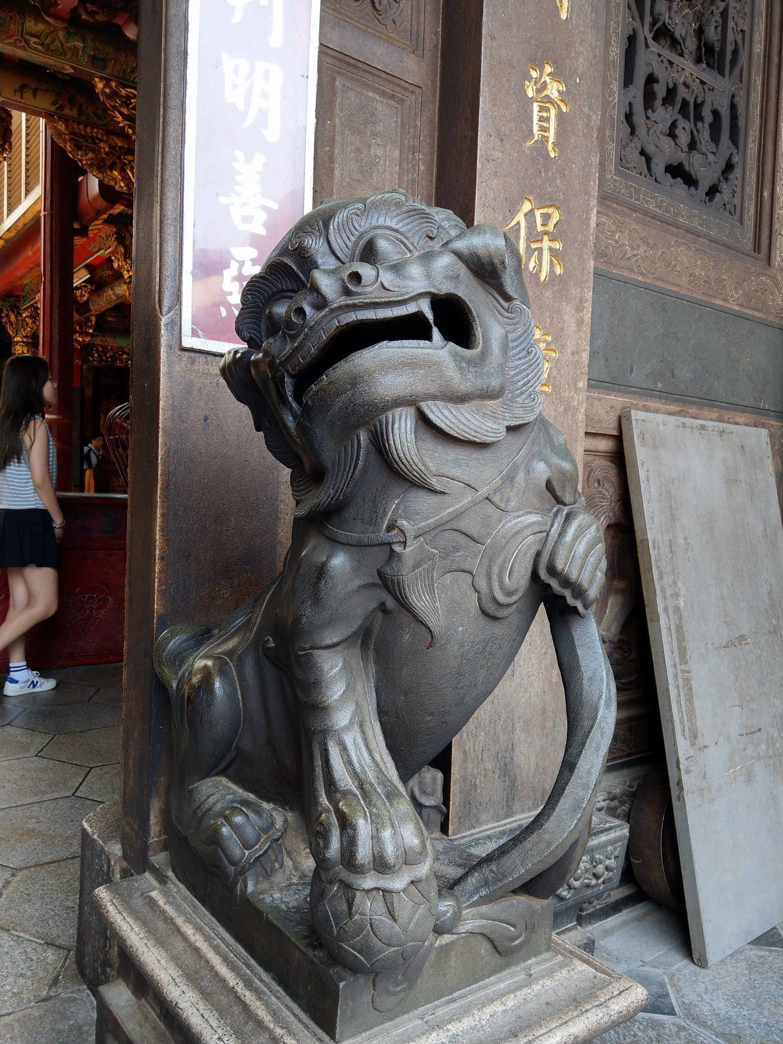 新竹都城隍廟的石獅所使用的石材,是取自泉州惠安黃塘的玉昌湖青斗石。在台灣廟宇的石獅中,新竹城隍廟的石獅石質最細、色澤最綠,時間久了墨綠色青斗石會轉化出油亮光滑的包漿皮殼,造型也最為小巧可愛。都城隍廟的石獅,亦是台灣郵政史上首次出現的石獅郵票圖案。