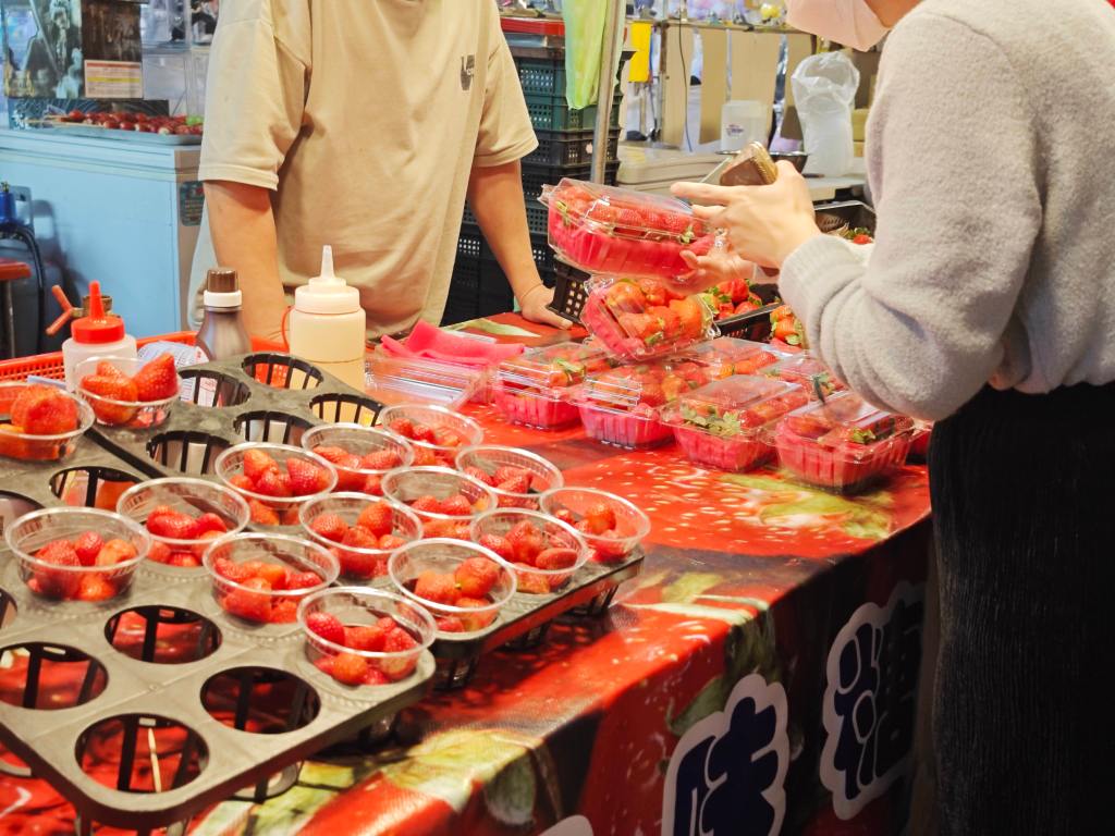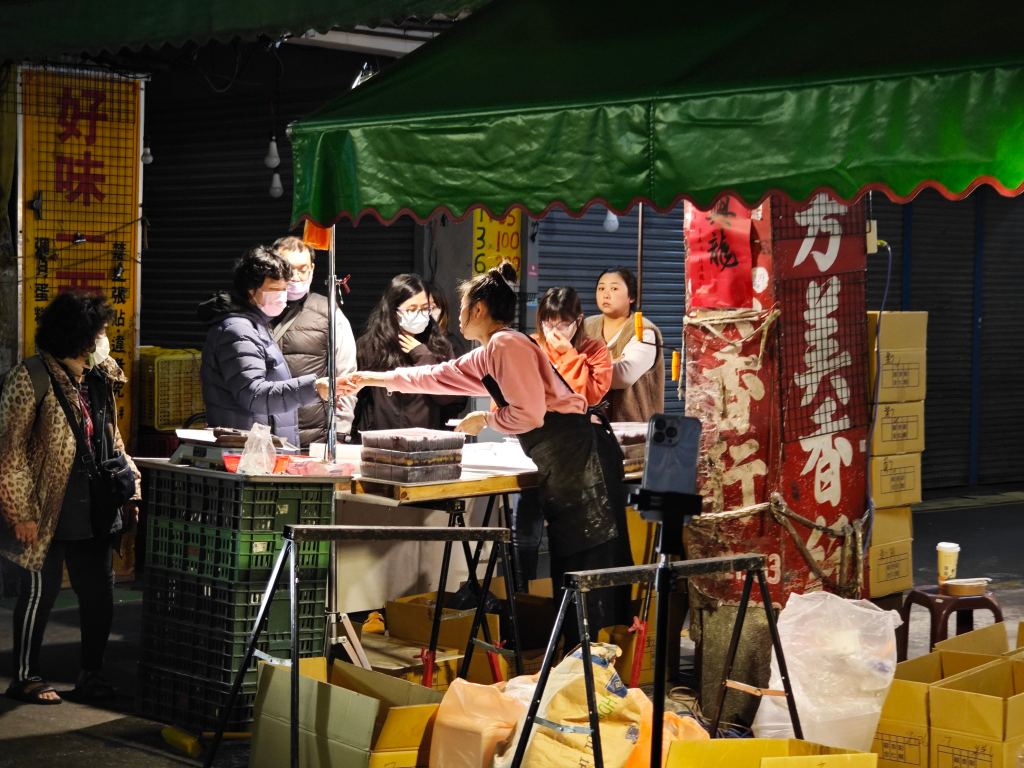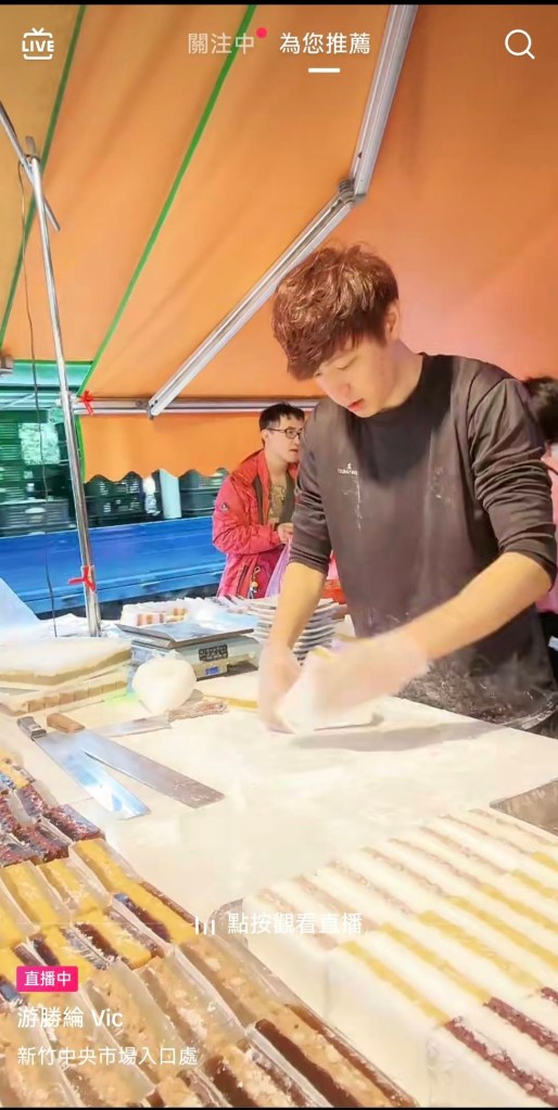 在中央市場入口還有賣糕餅點心的店家、從早上直播到晚上、曝光度相當高。