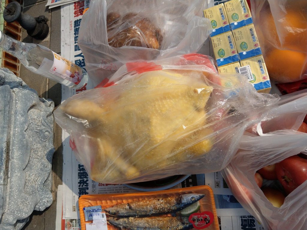 叔叔說:豬肉最大要放右上方,苗栗來的閹雞讓祖先能夠嘗到家鄉味。