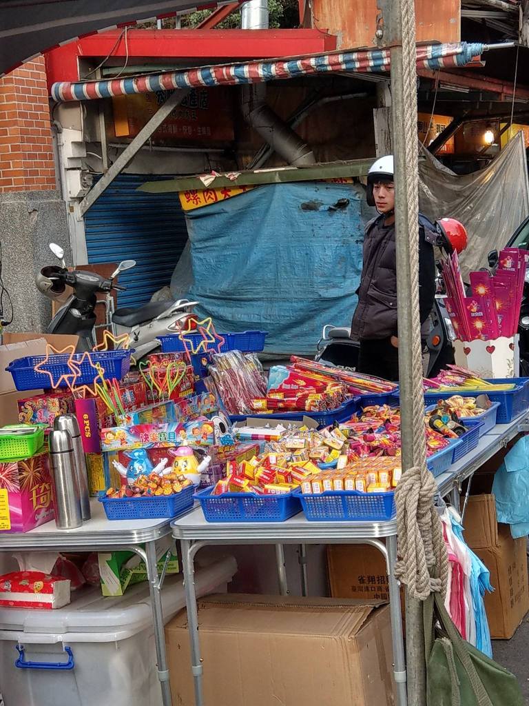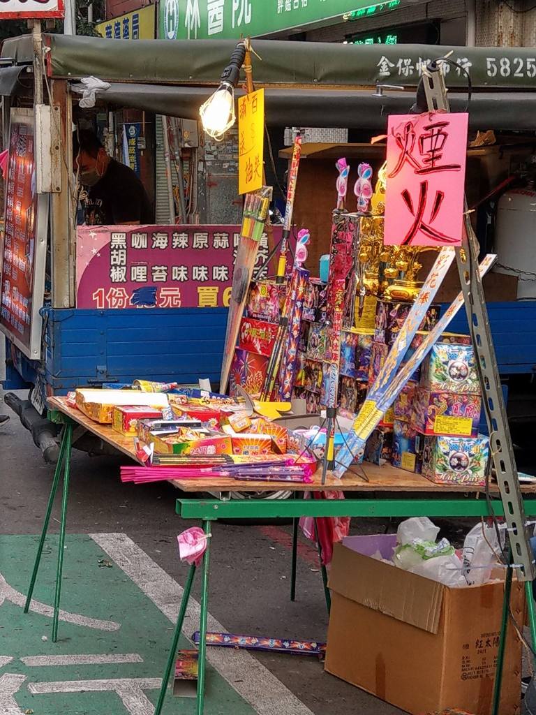 竹東市場一眼望去,煙火攤販一家,二家,三家,四家…….竹東的朋友說,在他們家,放煙火是不手軟的。好像放免錢一樣。這樣才有過年的氣氛。