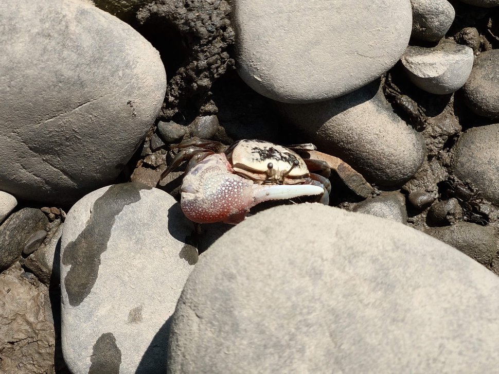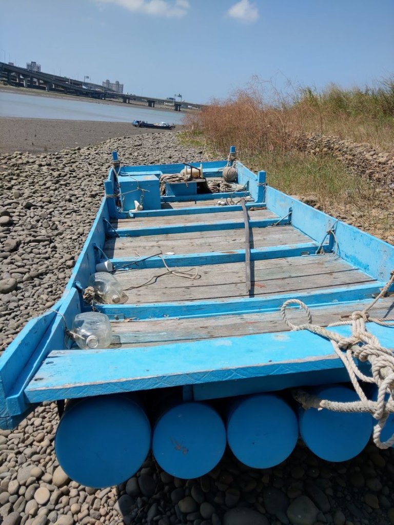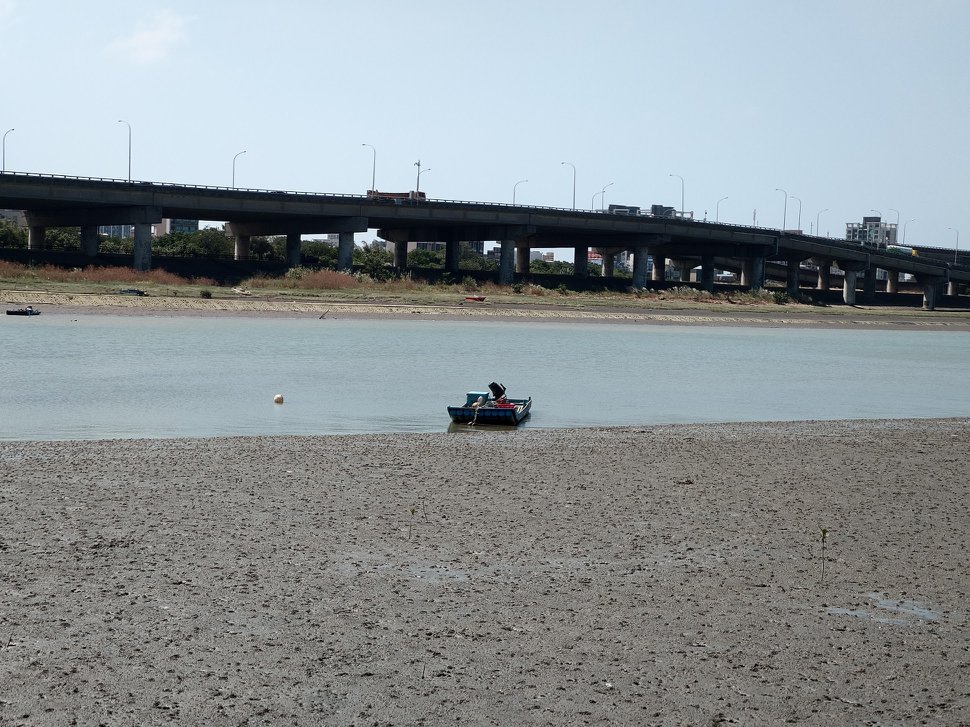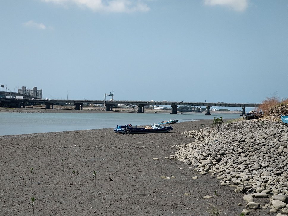 舊港河濱公園,不只招潮蟹遍佈,種類也想當豐富。圖片中,沙地上的小白點都是。紅色的舊港大橋與藍色的天空和漁船舢舨,讓舊港的景色遼闊中帶有溫度。而附近純樸的巷弄也讓人很喜歡。#現在正是台灣欒樹結果的時候,因為景色單純讓台灣欒樹更凸顯,相當好看。