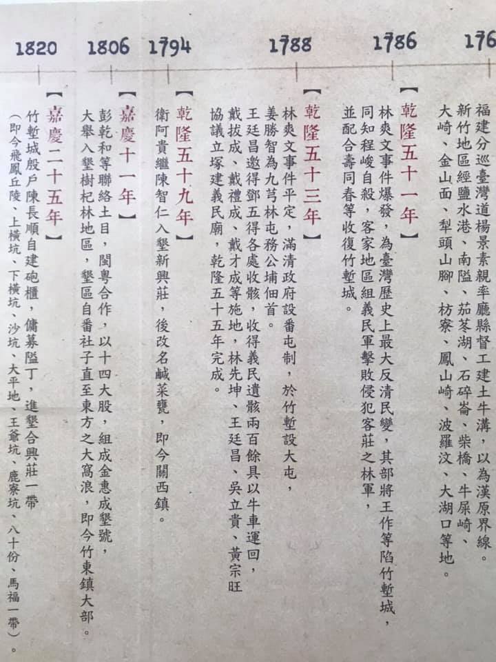 圖三:在新竹縣縣史館一樓大廳(新竹縣竹北巿縣政九路146號);乾隆五十三年(1788年)姜勝智為九芎林屯務公埔佃首。